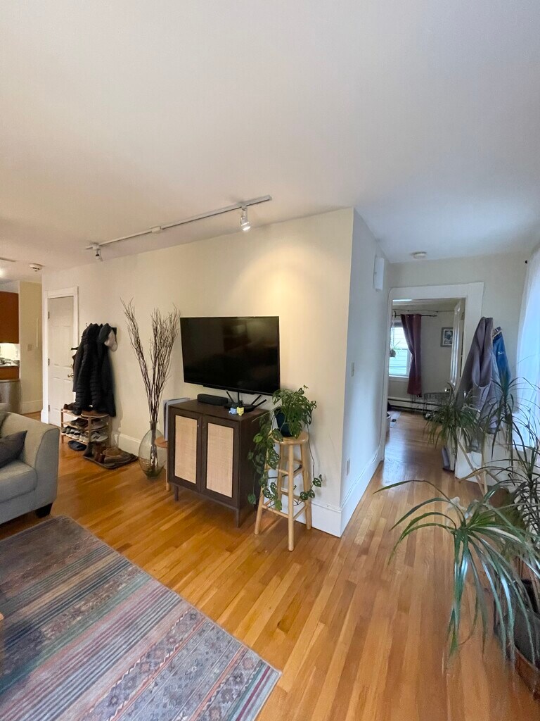 Entire unit freshly painted. Sunny 2 bedroom right off of Centre St. in Jamaica Plain. Generous sized rooms, updated kitchen with breakfast bar and separate area for a dining table. Deck space for a bistro table and chairs. One off street parking spot. Building laundry shared with one other unit. Great location close to Longwood Medical center, Jamaica Pond, bike paths, shops and restaurants. Move in now or February 1. Pet friendly. Amazing location. Unit gets great natural sunlight throughout.