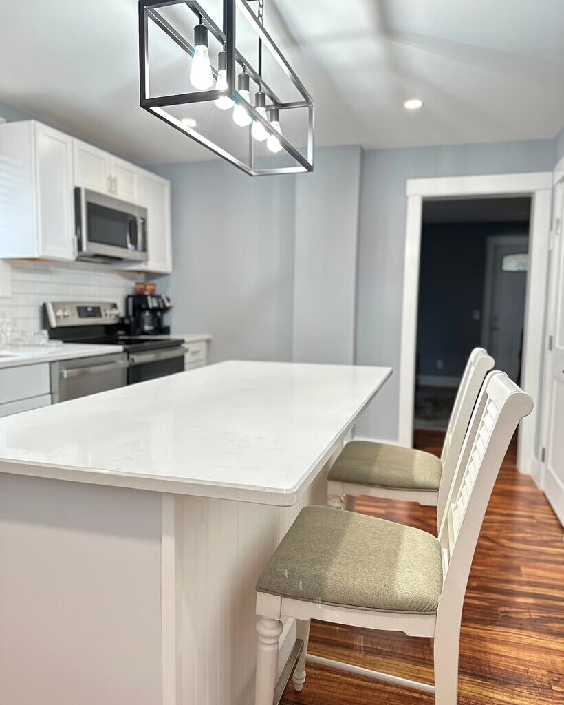 Enjoy this beautifully renovated 2-bed, 1-bath apt in the quiet and safe Lakewood neighborhood of Pittsfield! This bright and modern space features: Brand-new kitchen with all new appliances and a sleek marble countertop fully equipped with everything you need. In-unit laundry Cozy living room with a 65-in TV + full-size pull-out couch Enclosed sunroom porch Great water pressure 2 AC units included Basement storage Heat, Hot Water, Electric and Wi-Fi Included