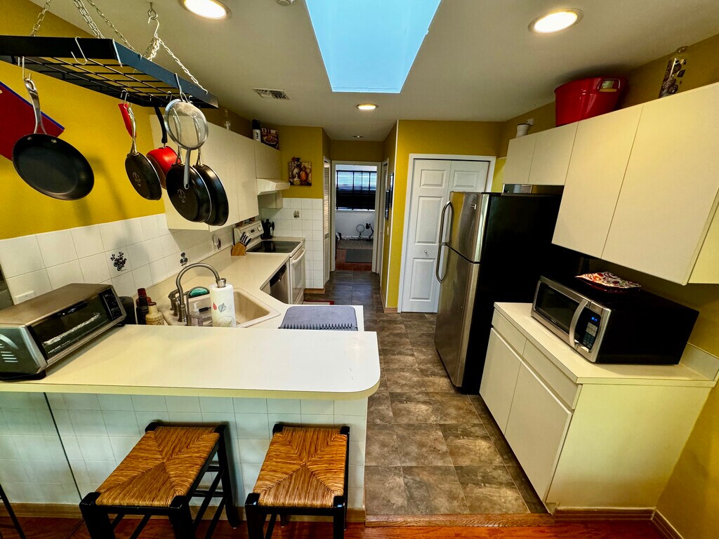 Beautiful Condo in the quiet and convenient town of Manorville, NY. The property is adjacent to a top rated public golf course, called Rock Hill Golf Course. This gorgeous unit is located on the second floor, is approximately 1340 sq ft, has vaulted ceilings with skylights, and backs up to woods. The unit has hardwood floors throughout, contains a large master bedroom with walk in closet, master bathroom with jacuzzi tub and shower, guest bedroom, guest/common bathroom with shower tub, and an office. It also has a balcony that is private and overlooks the woods and distant driving range. The unit has an electric stove, standard refrigerator, new washer and dryer, new forced air heating/cooling, large hot water tank, and electric grill. There are two assigned parking spots with plenty of guest parking, a community pool open in the summer, and a tennis/pickleball court available for use year-round. The community has a no pet policy except for emotional support / therapy animals, which require an extra deposit and monthly fee. While the unit is currently furnished, we are flexible and willing to leave it unfurnished, if desired. Rent does not include utilities, but trash/recycling, property care, maintenance, and snow removal is covered by the owner.