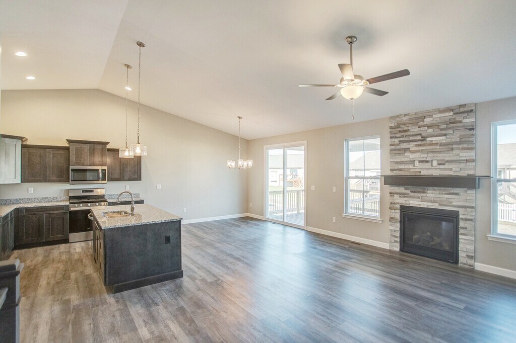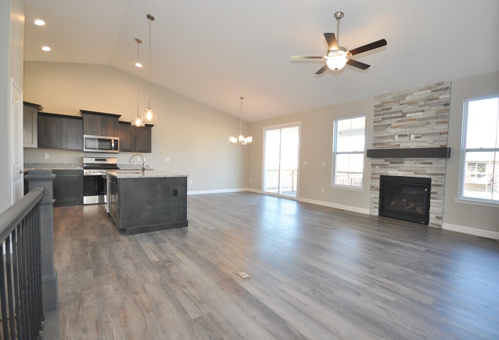 Unit vacant on May 31, ready for move in mid to late June 2026 NEW CONSTRUCTION LUXURY VILLAS-Granite countertops in kitchen, bathrooms and laundry room and vinyl hardwood flooring on main level Main Level- Large living room with stone fireplace, kitchen with granite countertops, dining area with sliding glass doors which lead to covered deck, master bedroom with walk-in closet, master bath with tiled walk in shower , 2nd bedroom, hall bath, laundry room and garage access Finished family room and 3rd bedroom in basement with other storage area Spacious 1900 square feet Maximum occupancy of 5 and only allows 3 cars Access to bike path from back yard Maintenance free (Lawn care and maintenance included in rent) Tenant is to pay for all utilities One YEAR LEASE REQUIRED
