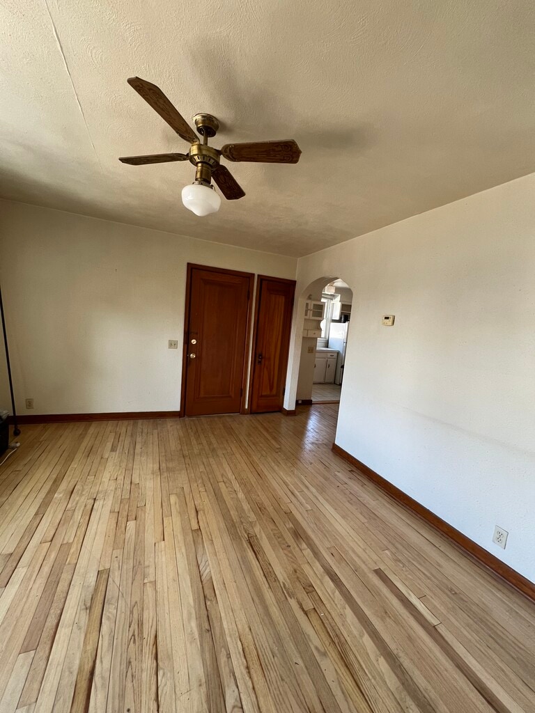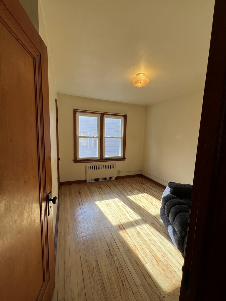 This cute apartment includes a fireplace, hardwood floors, and an arched room transition. It is conveniently located on a one-block, one-way street surrounded by single-family homes. There is a shared small backyard space. The lease will run until August 15th, 2026, with the option to renew for a year. It is also close to the bus line. No pets.