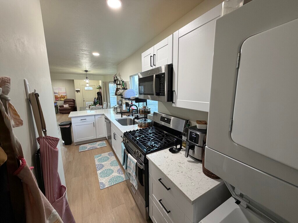 Newly renovated apartment for rent! Beautifully updated apartment located just 13 minutes from BYU, directly across from a park, and two blocks from Main Street—an ideal blend of convenience and quiet. This unfurnished basement apartment features a private entrance, in-unit laundry, brand-new appliances, new flooring and finishes, and dedicated parking. Utilities are split 50/50 between the upper and lower units. No animals allowed. Perfect for a single tenant or couple looking for a clean, modern space in a great location. Availability will begin April 1st.