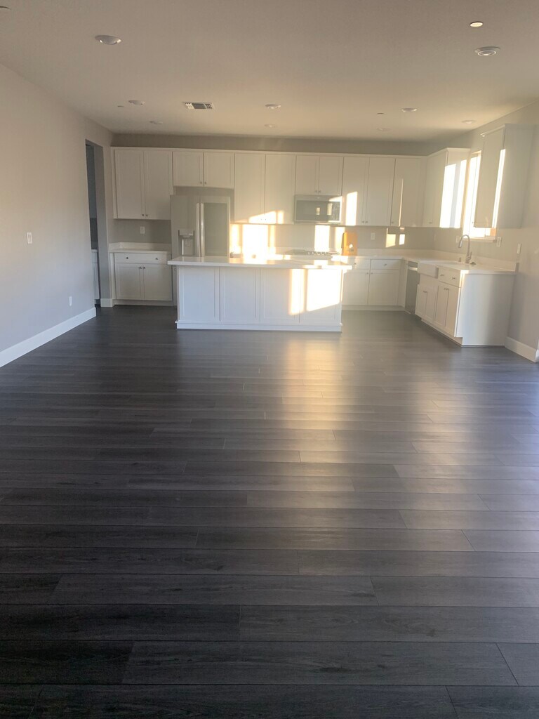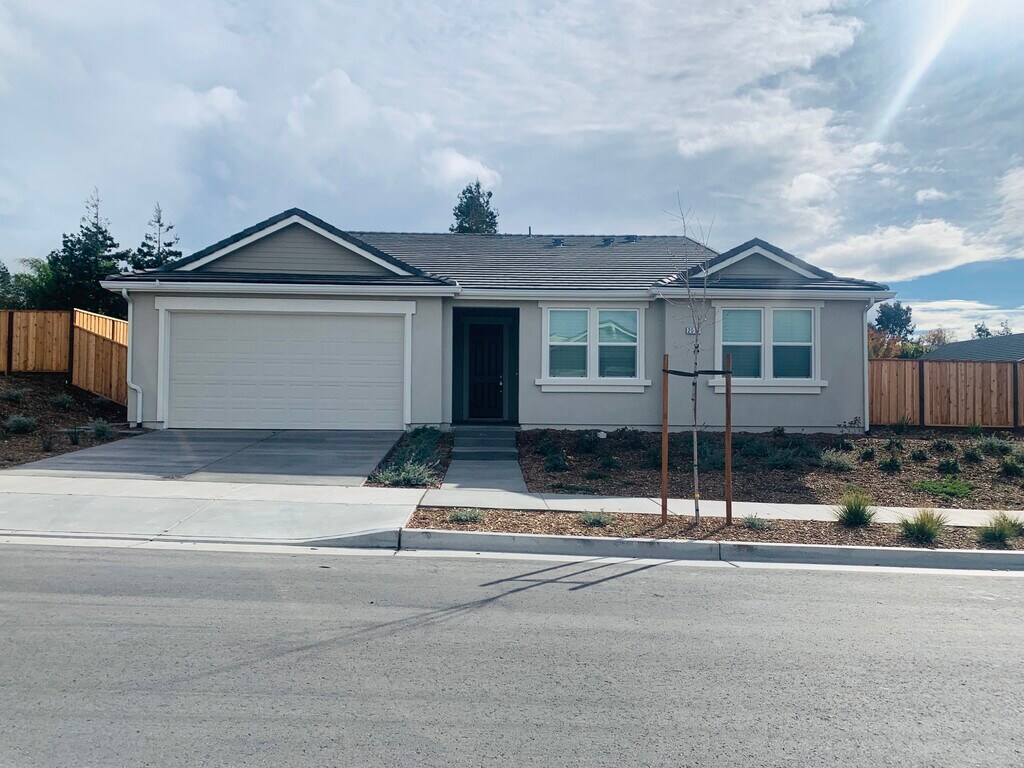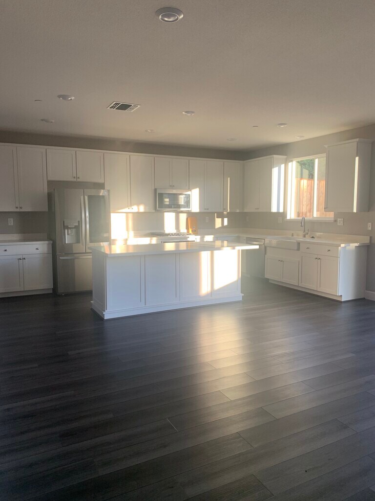 Gorgeous open floor plan with exceptional storage throughout—perfect for comfortable everyday living. The front door opens into a grand entrance with 9' ceilings and a wide, welcoming foyer. This is new construction featuring energy-efficient appliances, a smart thermostat, and solar power, helping keep utility costs lower. All appliances are installed and ready for move-in. To the right, you'll find the dedicated “family' wing”—three spacious bedrooms and a shared bathroom with a separate shower and toilet, making busy mornings easier for everyone. The laundry room is conveniently located inside the home. Enjoy a sweet little luxury of a half bath/powder room dedicated for guests. A large flex room offers endless possibilities: a formal dining area, home office, adult lounge, or children's play space. The bright, beautiful white kitchen is a highlight of the home, offering abundant cabinetry, quartz countertops on all surfaces—including the oversized island—a huge walk-in pantry, and an elegant butler’s pantry, making both daily cooking and entertaining effortless. The private owner’s suite features a coffered ceiling, flat-panel TV pre-wire, a walk-in shower, luxurious soaking tub, and spacious his-and-hers walk-in closets. The great room’s sliding doors opens to a large, private quarter-acre backyard—perfect for outdoor dining, playtime, gardening, pets, or weekend gatherings. Brand-new window coverings and luxury vinyl plank flooring offer durability, style, and low maintenance. The attached two-car, side-by-side finished garage with epoxy floor provides easy parking, with extra wide driveway to accommodate 3 cars, plus additional street parking available. No smoking, please.