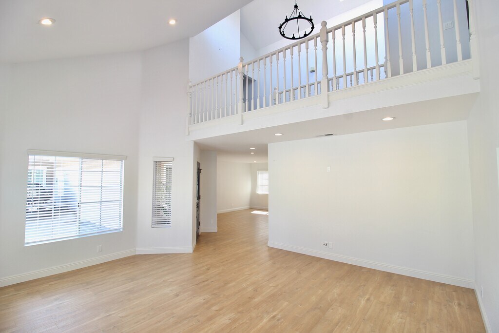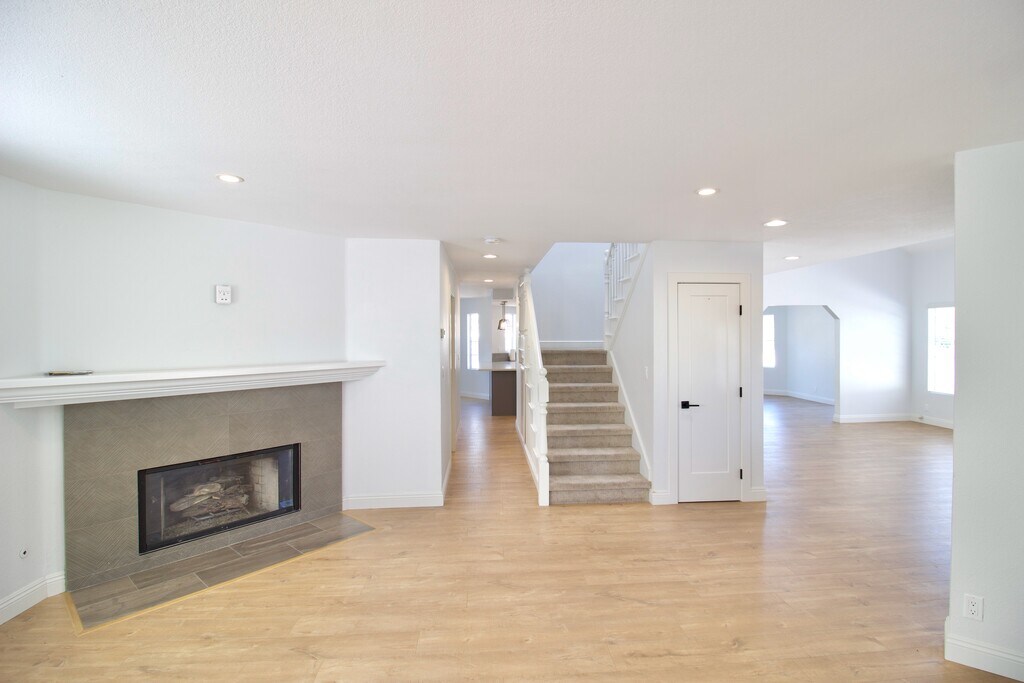 Remodeled rear unit townhome with a bright interior and spacious layout. This beautifully updated home hosts 3 bedrooms/3 baths plus office/bonus room with a mix of wood floors and carpet. As you enter this home you will immediately be drawn the two story living room ceiling and a room filled with light. You also will find the family room located just off the entry way with a cozy fireplace. There is a dedicated dining room with plenty of windows and sliding door access to the outdoor space. The kitchen was overhauled and comes equipped with quartz counters, new cabinets, stainless steel appliances, new lighting, breakfast bar, separate eating area and a big pantry. The eat in kitchen also provides access to the oversized outdoor space. The second floor hosts the living quarters with two identical bedrooms with vaulted ceilings, ceiling fans, mirrored closets and full bathroom. You're in luck, the laundry area is also located on the second floor. The primary suite has its own wing. There is an attached bonus room/office with a through and through fireplace and a super spacious bedroom suite with vaulted ceilings, ceiling fan, fireplace, deck and 2 large closets. The primary bathroom will undoubtedly capture your eye with its double sinks, double skylights, standalone shower and soaking tub with built in cabinetry and separate restroom. Rounding out this rare Floorplan is the outdoor space that is larger than the norm with a concrete finish, garden beds, lime tree and L shaped feature allowing multiple areas to entertain and play. There is a 2 car garage and guest space. Credit terms apply.