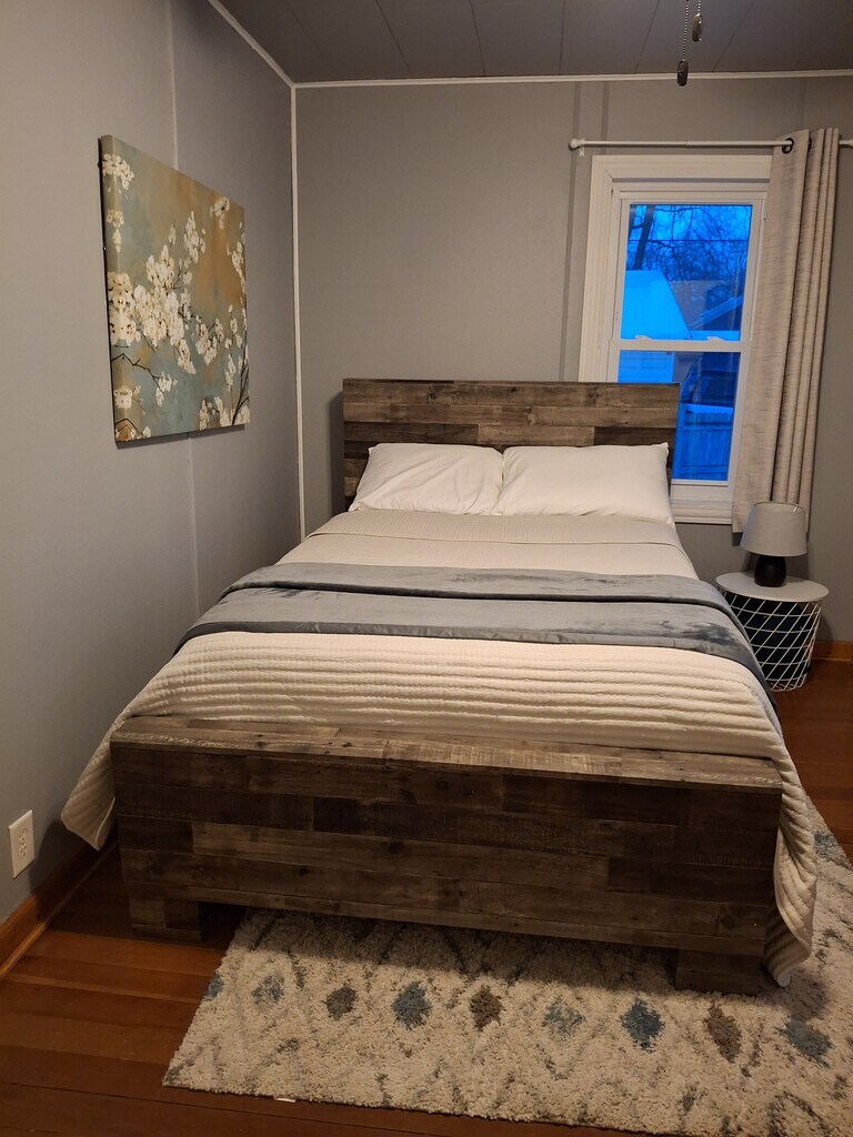 2 car oversized garage. Large fenced backyard. Great for fury friends to roam freely. Dedicated electric adjustable desk, work space High Speed Internet. New Central Air, Furnace, & windows Black out curtains for daytime sleepers. Smart TV's 55", 37" Large his and hers custom closet arrangments w/ hangers Heated bathroom feature. Same floor washer and dryer. 2 car garage w/ storage, garage door key pad, garage door opener. Keyless Entry Mini safe to secure valuables. Outdoor security cameras for extra peace of mind. (On from 11pm-6am Can be turned off upon request) Storage throughout the house. Fire Pit, Porch, Patio table and chairs available. Snow & Lawn included Shed not available for use. (Garage has plenty of storage) Welcoming art throughout the house. Working at mayo? Eliminate that fuel bill, walking and biking 5-10min Walking and Biking distance to all things great in downtown EC. Quick and easy routes to all major hospitals. Property located in Cannery District next to the Chippewa River State Trail, a 26-mile urban-rural trail. Trail connects to Phoenix Park, Brewing Projekt, Pablo Center, A brand new 2025 mix use park steps outside the door! and many more attractions w/ gorgeous river views.