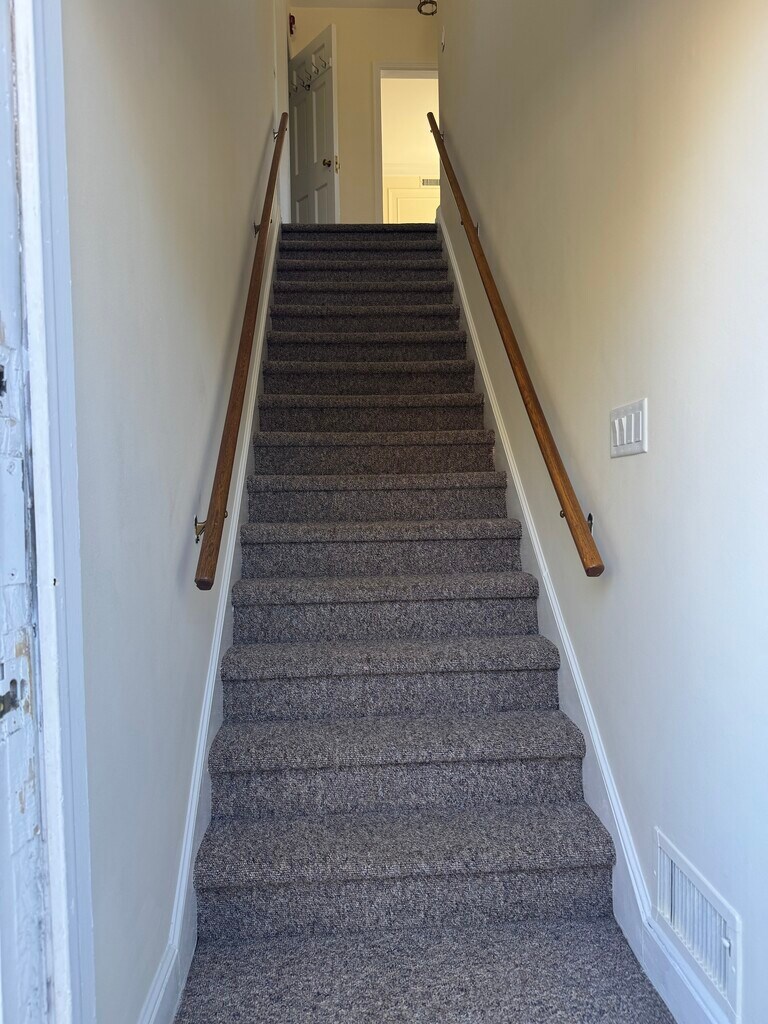 Downtown Westfield 2-Bedroom Apartment with Balcony Spacious and inviting 2-bedroom, 2-bath apartment located in the heart of downtown Westfield, directly across from Mindowaskin Park. This boutique building has only two units: one professional office below and this private residence above, offering a quiet, comfortable setting just steps from dining, shopping, and the train. The apartment spans approximately 1,275 square feet and features a large balcony deck off the living room, ideal for relaxing or entertaining. Inside, you’ll find two full bathrooms (one with a double vanity), a laundry room that doubles as an office or den, and abundant natural light throughout. The kitchen is bright and practical with matching white appliances, and the central HVAC system provides efficient heating and cooling year-round. The main living areas are carpeted for comfort, with tile flooring in the kitchen, laundry/office, and bathrooms. Private parking is available on-site, with additional street parking nearby. This residence offers a warm, approachable atmosphere in one of New Jersey’s most desirable downtowns with an easy walk to Westfield’s train station, restaurants, shops, and parks.
