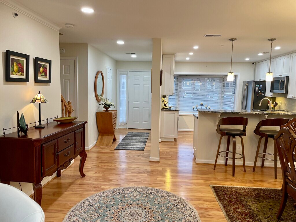 Location Meets Lifestyle at Vienna Trail. Perfectly positioned for ultimate convenience, this stunning 2023-remodeled home is just steps from the W&OD Trail, local grocers, boutique shops, and Vienna's vibrant dining scene. Interior Highlights Sophisticated Main Level: Featuring brand-new solid hardwood floors and an open-concept layout. The gourmet kitchen is a showstopper with sleek white cabinetry, premium granite countertops, glass subway tile, and a suite of stainless steel GE appliances. Sun-Drenched Living: The breakfast bar flows seamlessly into the dining and living areas, where crown molding and large sliding glass doors lead to a private rear deck perfect for morning coffee or evening relaxation. Primary Retreat: The upper-level primary suite offers a spacious sitting area, walk-in closet, and a designer bath featuring a frameless glass shower with floor-to-ceiling marble-style tile. Guest & Family Space: Two additional bright bedrooms share a refreshed hall bath complete with a contemporary espresso vanity and quartz finishes. The "New" Factor (2023 Updates) Everything has been handled for you: New solid hardwood flooring, a total kitchen and bathroom overhaul, new carpeting, fresh paint throughout, and upgraded appliances. It is truly move-in ready. Exterior & Community Perks Classic Curb Appeal: Traditional brick facade with a charming bay window. Zero-Maintenance Living: Enjoy a pristine exterior without the yard work. Parking & Amenities: Includes two reserved parking spaces (#41 & #23) and access to the community pool. Experience the best of the 22180 zip code luxury, walkability, and modern comfort all in one.