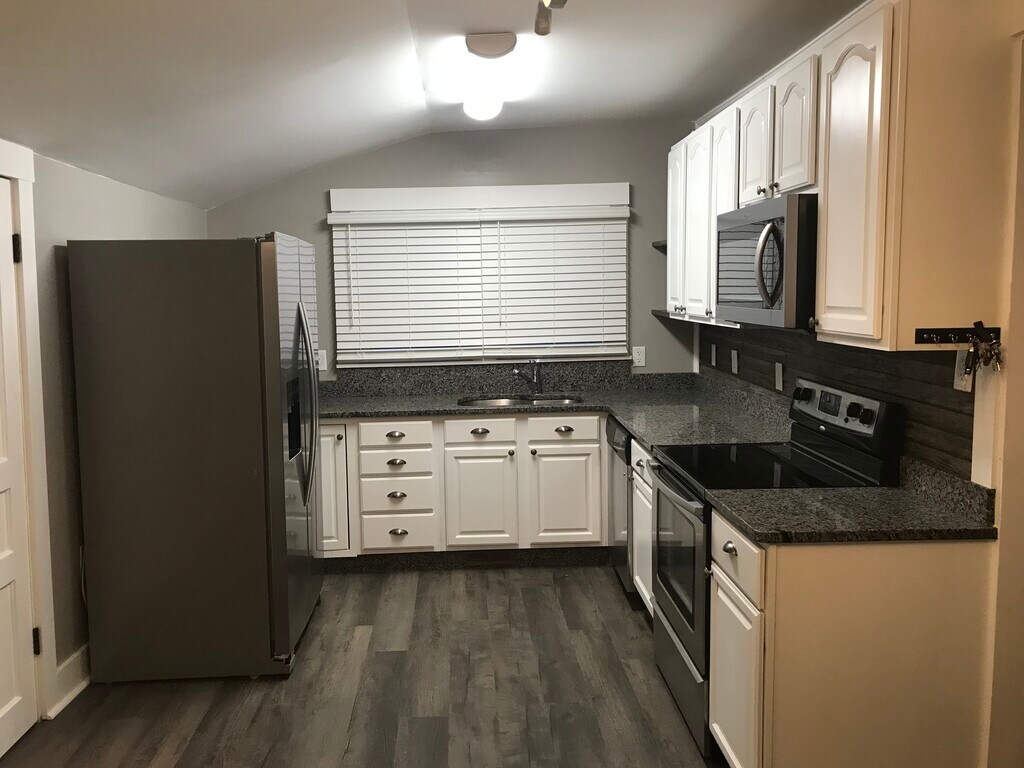 Casa de dos dormitorios recientemente renovada. Todo es nuevo. Cuenta con un baño completo y un baño auxiliar. Nuevos pisos en toda la casa La cocina tiene encimeras de granito con electrodomésticos de acero inoxidable Lavandería independiente con conexiones para lavadora y secadora. Tiene una popular sala de barro que llega en la puerta trasera, donde puedes quitarte los zapatos y colgarte el abrigo. Gran vestidor en el dormitorio principal, así como un baño auxiliar en suite, estacionamiento privado y un amplio patio trasero , calefacción New Central para servicios públicos muy bajos. El cuidado del césped está incluido en el alquiler. No se permite alojamiento en la sección 8. No se permiten mascotas. No se permite fumar.