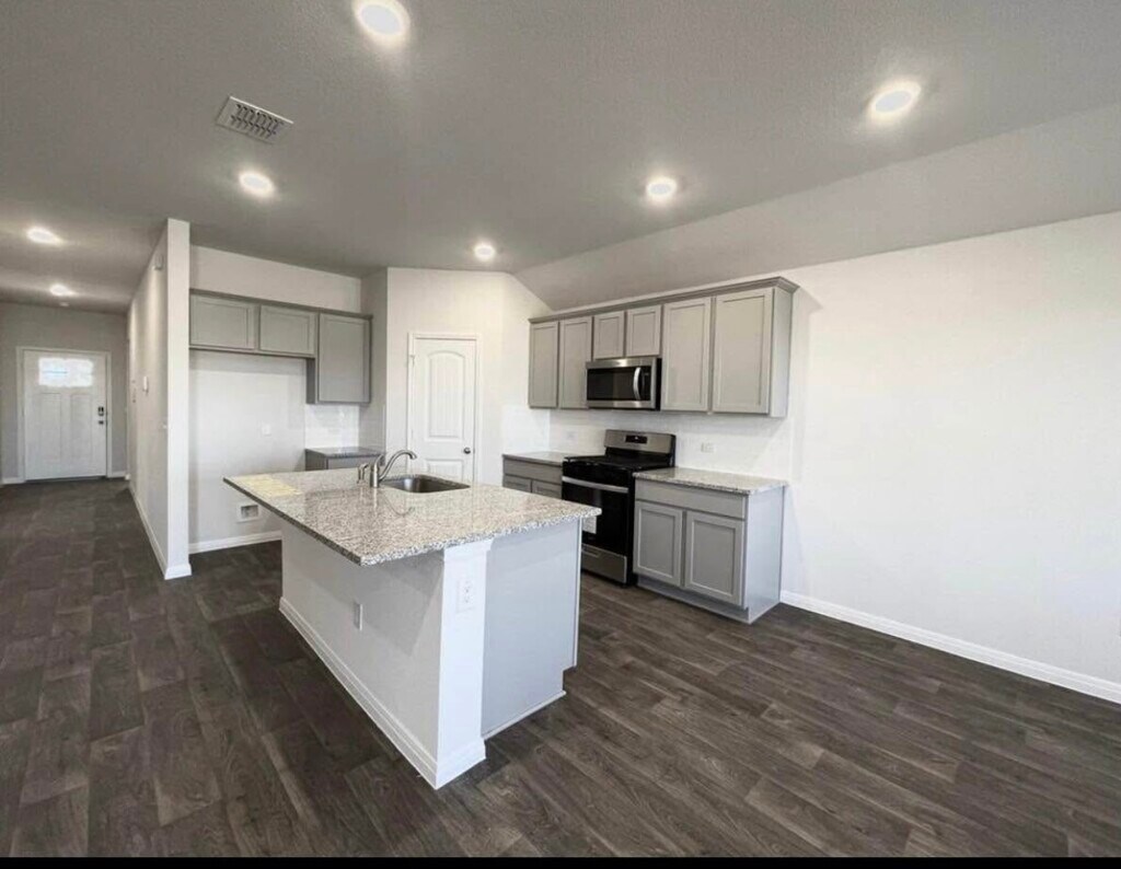 Nearly new 4-bedroom, 2-bath single-story home on a rare 0.30-acre lot in Manor's Carillon community. Bright, open layout with a spacious living area that flows into the kitchen featuring a breakfast bar, pantry, and plenty of cabinet space. Private primary suite offers double vanity and walk-in shower, with three secondary bedrooms down the hall for flexible use as bedrooms, office, or playroom. Huge backyard provides room to spread out, garden, or set up outdoor seating. Easy access to Hwy 290 and SH-130 for quick commutes to Austin, Tesla, Samsung, and nearby employers. Located in Manor ISD, close to Presidential Meadows Elementary and area parks, shopping, and dining.