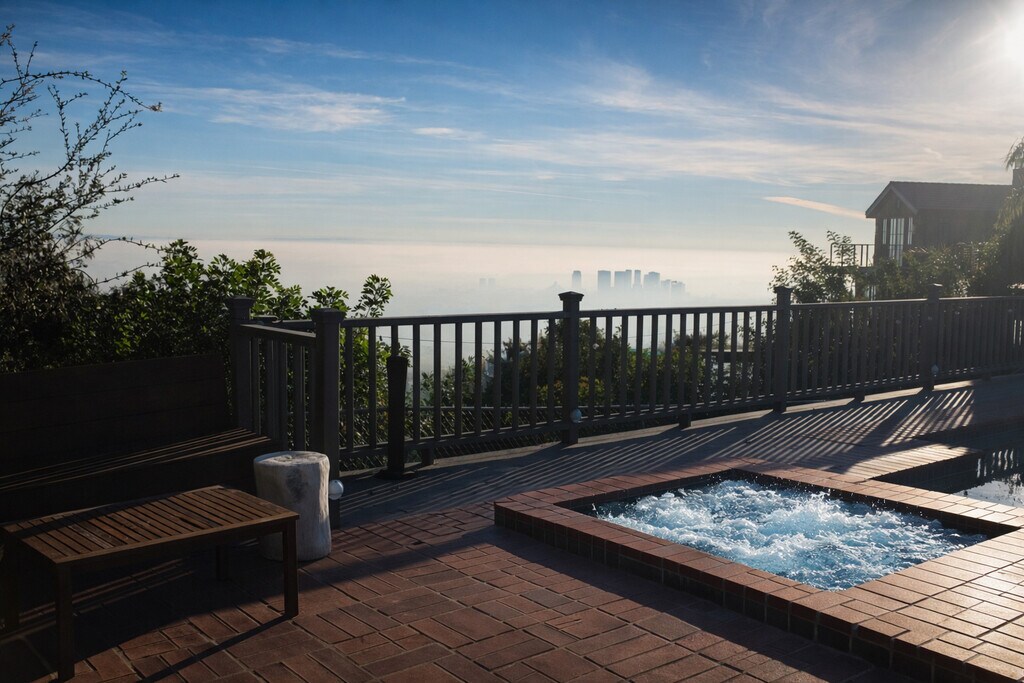 This truly one-of-a-kind Laurel Canyon home offers a rare combination of privacy, space, and creative infrastructure at one of the highest points in the city, with sweeping panoramic views in every direction. The property is ideally suited for musicians, producers, artists, and creative professionals seeking an inspiring long-term residence. The main house features 3 bedrooms and 5 bathrooms, including a spacious primary suite with kingsize bed and en-suite bath and bathtub, a guest bedroom with queenside bed and en-suite shower, and an upstairs bedroom with double bed and a large foldout sofa (queen size) with its own dedicated private bathroom located directly next to the room. The home also includes an additional office / crafts room, ideal for creative work, design, sewing, or administrative use. A standout feature is the detached, professionally acoustically treated music recording studio with a separate entrance, bathroom and kitchenette. The studio includes acoustic treatment and furniture but no music equipment, making it ideal for producers or creatives who want to bring their own setup while preserving a purpose-built studio environment. The home comes fully furnished and rented as-is, including furniture, decor, TVs, and household items as shown in photos. A Young Chang baby grand piano is currently in the home and is available for purchase separately, by negotiation. Outdoor spaces are expansive and exceptional, offering multiple areas to relax, work, or entertain quietly while enjoying unmatched views of Los Angeles, a large heated pool, hot tub, fire place and patio heaters. Parking is generous for a hillside property, with a covered carport plus additional on-property parking areas. This is a rare opportunity to lease a highly specialized, creatively focused home in one of LA's most iconic neighborhoods. No large parties or subleasing. Pets may be considered on a case-by-case basis. Terms: Minimum lease term: 6 months (longer-term preferred) Security deposit: Required Utilities: Tenant pays all utilities directly to utility providers based on usage Fully furnished rented as-is. Furniture, decor, TVs, and household items shown in photos are included. The property will be delivered as-is; no changes to condition. Includes a detached music recording studio with separate entrance. Studio is fully and professionally acoustically treated and furnished, but no music equipment is included. Optional: Current tenant is willing to sell the YOUNG CHANG BABY GRAND PIANO (separately negotiated).