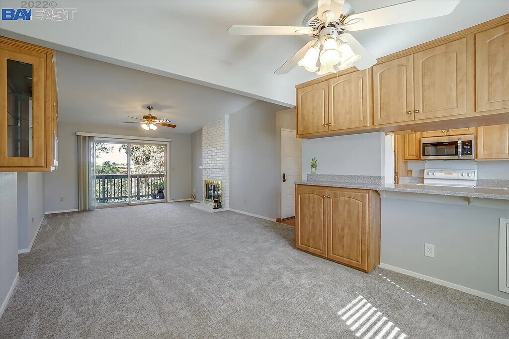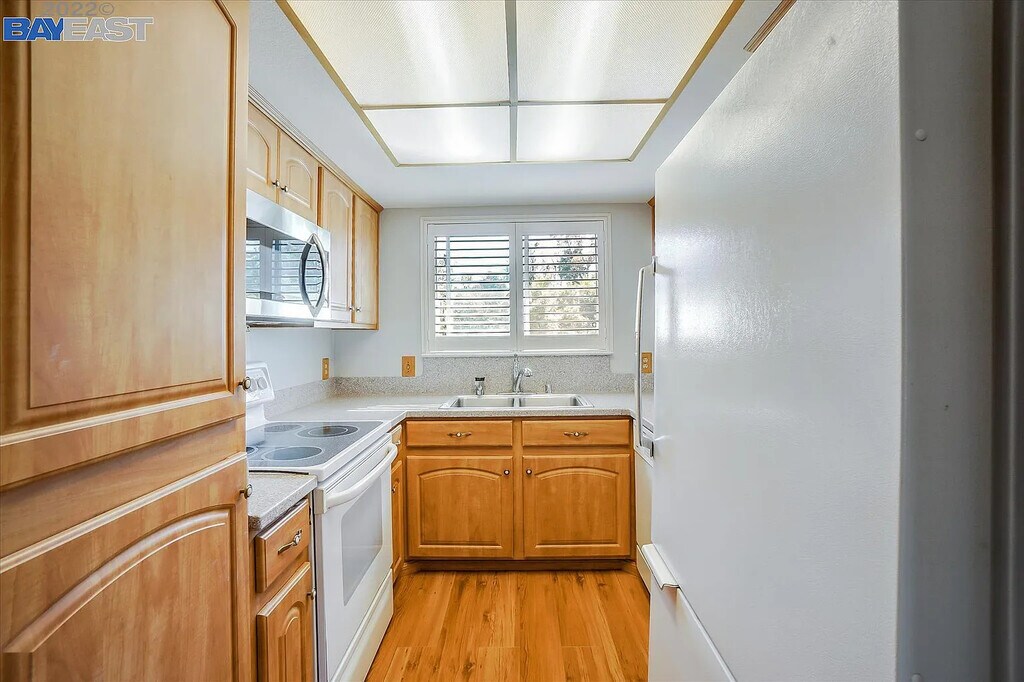 This beautifully maintained three-bedroom, two-full-bath condo is a perfect choice for comfortable living. The home is light and bright, featuring an oversized living room and dining area that offer both privacy and convenience. As a Second-floor end unit, it also includes a fireplace and in-unit laundry, along with new appliances: a dishwasher, refrigerator, and washer/dryer set. There is a large storage room for bicycles, tools, or supplies. The neighbors are friendly, and the community is quiet and well-kept, surrounded by lush trees, making it a great place to walk dogs. Amenities in this gated community include two swimming pools, a spa, and a dry sauna. Conveniently located near the freeway, shopping centers, and schools, this condo is a great place to call home.