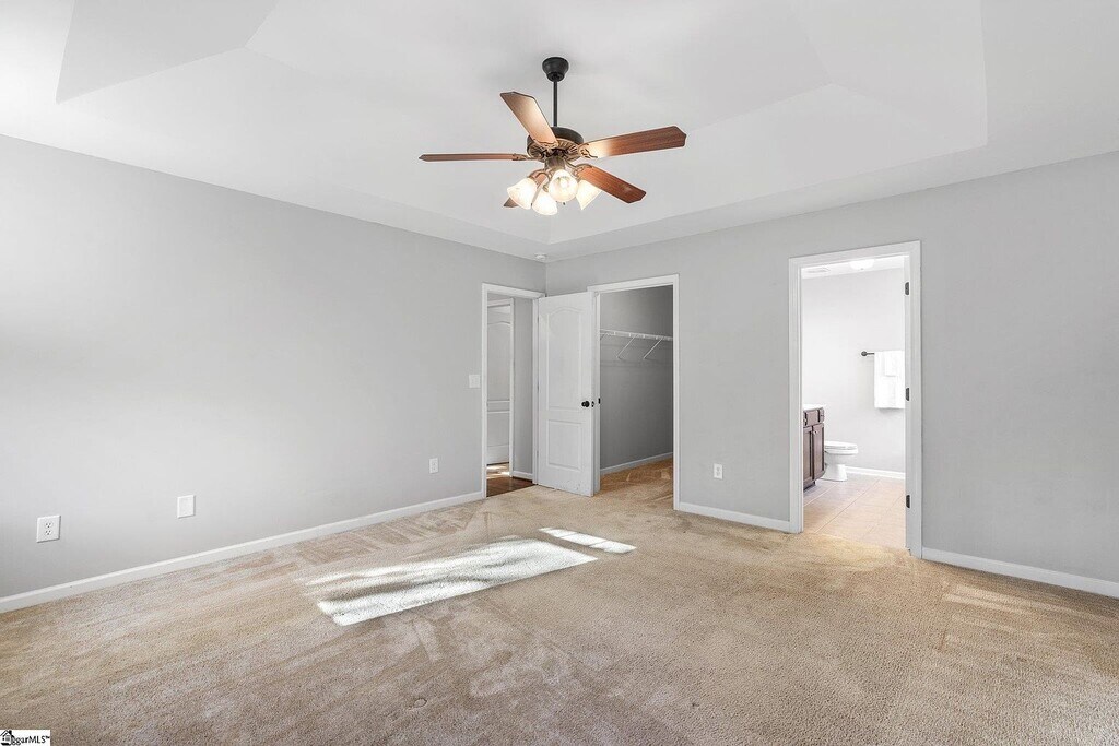 MOVE-IN READY: This inviting residence features an open floor plan highlighted by vaulted ceilings, exquisite hand-scraped engineered hardwood floors, and a fresh coat of paint throughout. The kitchen is equipped with sleek black appliances, granite countertops, a large island, and a pantry for added convenience. Enjoy a generously sized den and a separate sitting room, perfect for use as a home office or playroom. The main floor includes a spacious master suite with dual sinks, an elongated vanity, a separate garden tub, a tiled shower, and ceramic tile flooring, plus a large walk-in closet. Two additional bedrooms and a full bathroom with tub/shower combination are also on the main level. Upstairs, there is a sizable bonus room with flexible uses. The home offers a two-car garage with an extra parking pad, a screened porch, an expansive side yard, and a private backyard overlooking a serene wooded area. Zoned for excellent schools: Elementary — Pelham Road, Middle — Beck, High — J. L. Mann Pet-free home — No pets permitted Non-smoking / non-vaping home Renters insurance required Lawn maintenance included Trash pickup included Move-in ready