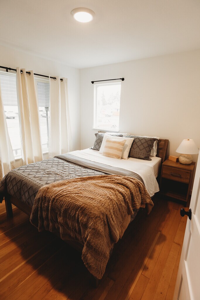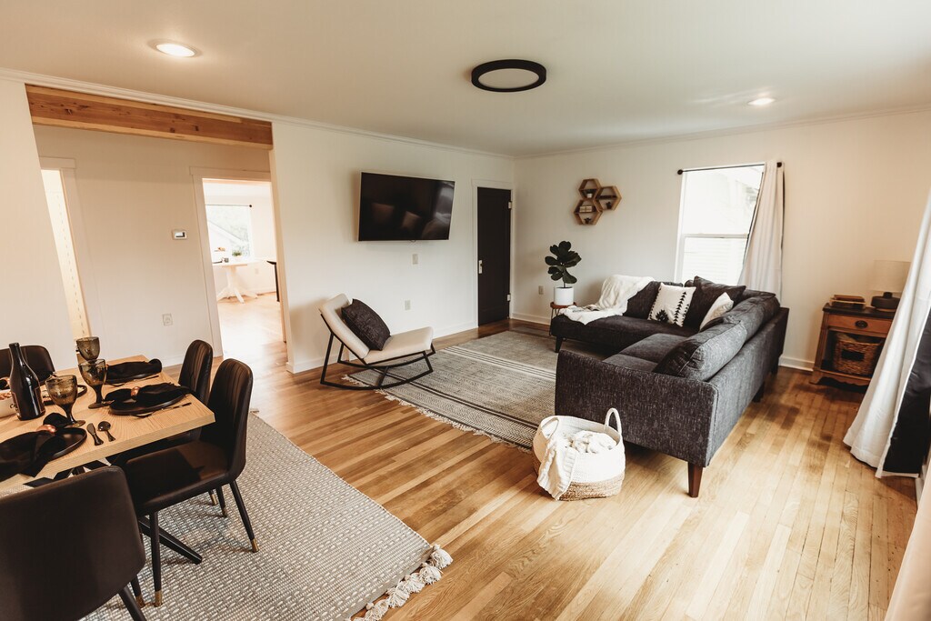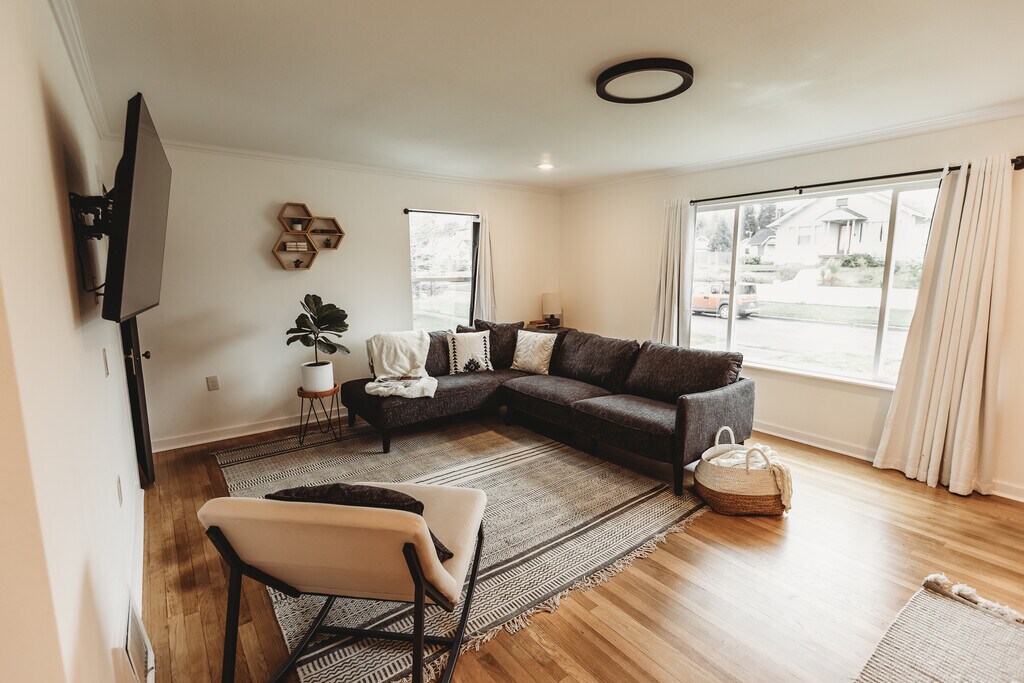 This is a 100yr old fully furnished and renovated home in the middle of Port Angeles. This is a 1650 sqft 4 bedroom 1.5 bathroom house. Included in monthly price is a fully furnished home with appliances (Washer, Dryer, dishwasher, refrigerator, window AC), Utilities (electricity, water, sewer, garbage & recycling), Central electric heating furnace, Hi-speed internet & smart TVs. There is a mountain view. Walking distance to coffee, restaurants, bus line and shopping. Well stocked kitchen with basic supplies for cooking. Small Office space. The upstairs large bedroom can have the second bed removed if needed. The 4th bedroom upstairs with bunkbed is very small and more of a child bedroom. Mexican restaurant across the street, Grab a marg and walk home ;) With included utilities ($450), internet ($120), and lawn service ($80) this estimates comparable rent at $3,150 ($3,800 - $600) for a fully furnished home. This home has a small fenced backyard and a single car garage that is more for storage than car parking. There is a single lane driveway for car parking beside the house plus street parking. No Pets No Smoking Proof of employment required month to month lease available as well as 3-6 month lease options. You can apply through here or email: Purvisionproperties@gmail with questions and tell us your story and what you are looking for.