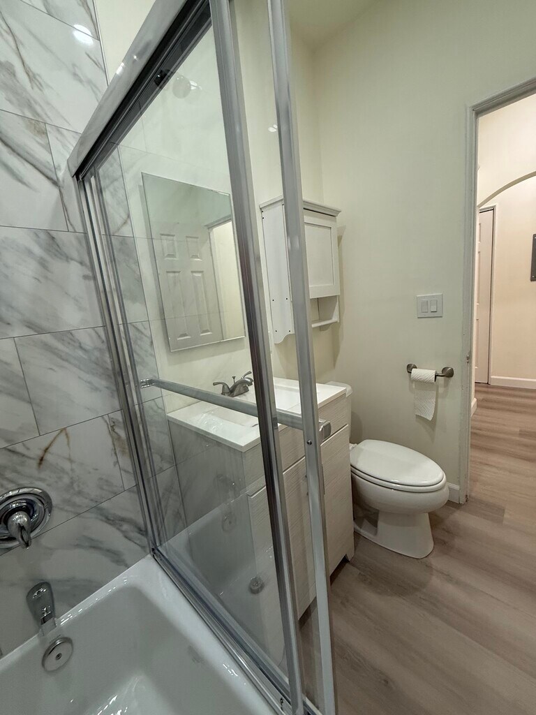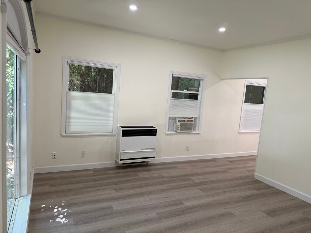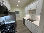 Brand New Kitchen, Bathroom, Floors, Windows Covered Parking Included Lower Front, All New, One Bedroom, Plus Parking. New Full Bath, New Kitchen, New Hardwood type Floors With Arches, High Ceiling in 8-unit building. North of Wilshire in Prime Beverly Hills, Walk to Rodeo Dr. & Restaurants. Window Air conditioner, All New Large kitchen with Stainless Steel Dishwasher/Refrigerator/Gas stove/Built-in Microwave, garbage disposal, Quartz countertop & lots of brand new soft close cabinets, High ceilings, Ample closet space, Lots of Brand New double Pane Windows facing vegetation, Approx. 750 Square Feet. Laundry on premises. Covered Parking. No Pets Paid Utilities: water, hot water, Trash & Gardener Tenant pays for Own Gas, Electric and internet