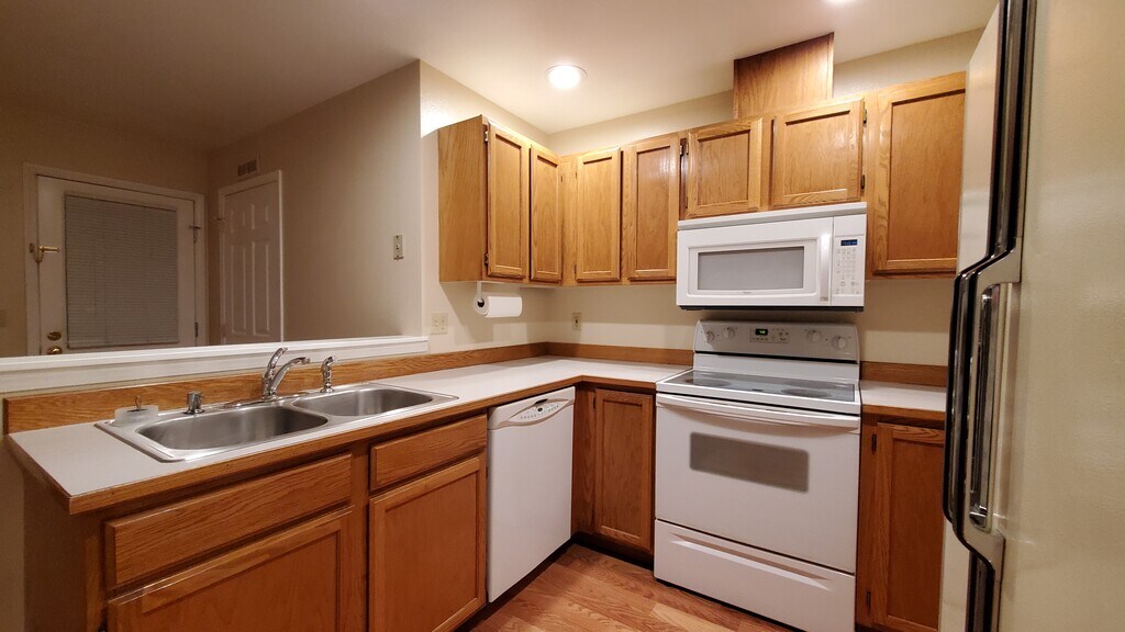 NOTA: Esta es una ocupación máxima de 1-2. No se permite fumar. No se permiten mascotas de ningún tipo. Nos reunimos con nuestros nuevos inquilinos en persona para revisar y firmar el contrato de arrendamiento, emitir llaves, completar un recorrido y repasar cualquier pregunta relacionada con la propiedad. DESCRIPCIÓN: Amplio condominio de dos niveles recientemente remodelado de 1040SF ubicado en el tranquilo y bien mantenido complejo de condominios University Place. Dos dormitorios, baño principal y baño auxiliar, armarios de almacenaje en el primer y segundo piso, lavadora/secadora, cocina con cubierta de vidrio, horno de microondas empotrado con ventilador de campana, horno de microondas para encimera, refrigerador, lavaplatos y triturador de basura. Patio trasero, un garaje para coche con almacenamiento y un segundo aparcamiento reservado en el hotel. Todos los pisos nuevos en toda la unidad. La exposición de las ventanas este/oeste ofrece una excelente iluminación y los revestimientos de pared neutros y claros se adaptan prácticamente a cualquier gusto de mobiliario. Diseño de cocina/comedor con fácil acceso al patio trasero para aprovechar las comidas al aire libre en el clima soleado y soleado de Ellensburg. La sala de estar, el almacenamiento y los armarios utilitarios, así como un baño auxiliar, la cocina y el comedor, completan el primer piso. Un gran maestro con vestidor iluminado y entrada privada al baño completo, y un amplio segundo dormitorio u oficina con un armario de buen tamaño y ventanas del oeste para ver los a menudo espectaculares atardeceres del este de Washington conforman el segundo piso. En habitaciones separadas junto al pasillo se encuentra la sala de servicios públicos con lavadora/secadora y estantes de almacenamiento. Al otro lado del vestíbulo hay un armario con mucho espacio para guardar sábanas, mantas, toallas, etc. Justo al lado de la puerta principal hay un pequeño jardín ideal para aquellos a los que les encanta cultivar sus propias flores o verduras. Todos los terrenos están regados por rociadores automáticos, incluido el espacio del jardín y vallados en el patio trasero, así que todo lo que tienes que hacer es plantar y disfrutar. Junto al jardín hay un garaje de un automóvil con abrepuertas automático, luces, electricidad, mucho almacenamiento y la mayoría de las herramientas que necesitaría para trabajar en su jardín y una escalera. El centro de buzón de correo, el contenedor de basura y el lugar de estacionamiento reservado para el segundo automóvil se encuentran a corta distancia de su puerta principal. En general, este complejo es muy tranquilo con gente amigable y se encuentra a una cuadra del campus de CWU, o a corta distancia a pie o en automóvil del centro de Ellensburg.