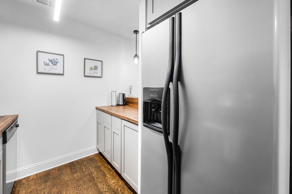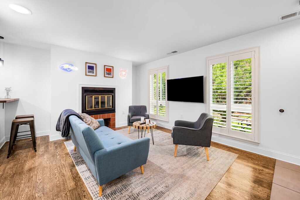 Beautiful 2-bedroom, 2 full bath open floorplan condo with hardwood floors throughout the living area with carpet in the bedrooms. Unit overlooks courtyard. Kitchen was remodeled in 2025 and features butcher block countertops, stainless-steel appliances and a breakfast bar. Living room/dining room area highlighted with built-in fireplace and custom nook with built in shelving. Parking permit included and lot is right behind unit. Close to everything downtown. 2 blocks from the harbor & walking distance to stadiums and Federal Hill! Easy access to I-95 or I-83 for commuting. Condo is in one of the original buildings in this development and has concrete between levels and units to aid with noise reduction in and between units.