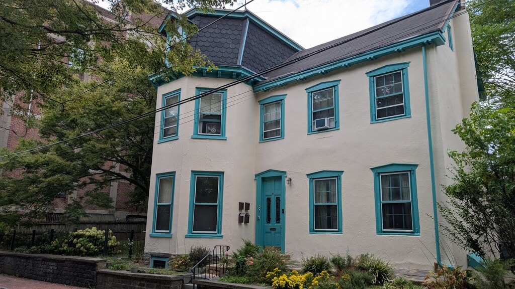 Second-floor apartment in a historic building on a quiet, tree-lined street near Germantown Ave. Close to public transit. Very walkable - close to Uncle Bobbies, Germantown Friends School, Germantown Kitchen Garden, etc. Large yard. Pet-friendly. Water and gas (heat) are included. Tenant pays for electricity. Large yard is shared with other tenants. One-year lease.