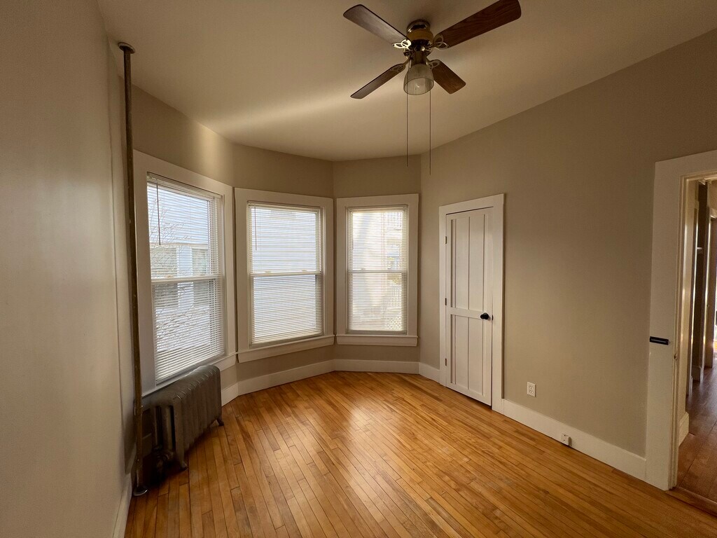 Sunny and spacious 1st floor 3 bedroom in quiet Deering neighborhood, 10 minute walk to USM, 5 minute drive to downtown Portland, 1 minute walk to bus line. Classic Portland apartment with hardwood floors, high ceilings, lots of windows, updated kitchen and bath, front porch, efficient natural gas furnace, off-street parking for 2 cars. Plowing and yard maintenance included. Available now, showing by appointment only. Pets ok with deposit.