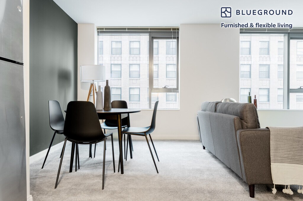 Ofrecemos precios personalizados para cualquier duración. Las tarifas pueden variar según las fechas exactas de llegada y salida. La tarifa para esta casa comienza en $2,520* / mes. Visite nuestro sitio web e introduzca sus fechas de estancia para ver los precios actualizados de su reserva específica. *El precio presupuestado es: (1) basado en la mudanza en el primer día en que la unidad esté disponible, (2) aplicable solo si se factura por adelantado; puede ser más alto si se factura en múltiples pagos, (3) sin incluir impuestos ni servicios públicos. Descubra lo mejor de Chicago con este apartamento The Loop de un dormitorio con vistas a la ciudad desde una de las plantas más altas del hotel. Será fácil simplemente presentarse y comenzar a vivir en este apartamento contemporáneo amueblado en Blueground con su cocina totalmente equipada, una elegante sala de estar y nuestro dedicado servicio de asistencia en el terreno. (ID #CHI268) Diseñado pensando en usted Magnífico mobiliario, cocina totalmente equipada, televisor inteligente y altavoz inalámbrico premium son solo algunas de las comodidades que encontrará dentro de este apartamento de un dormitorio. Con una ubicación ideal en Chicago, también encontrará mucho para adorar al aire libre. Cuando esté listo para relajarse, estará encantado de descubrir que todos los dormitorios de Blueground cuentan con colchones de calidad superior, sábanas de lujo y toallas acogedoras. Nos encargamos de todo para que puedas simplemente presentarte y empezar a vivir. Este apartamento también ofrece lavandería en el apartamento. Servicios para dormir con cama Queen, 63 pulgadas/160 cm Los servicios del edificio exclusivos de este dormitorio incluyen: - Área de barbacoa - Portero - Secador - Ascensor - Gimnasio - Piscina - Lavadora - Salón - Se permiten mascotas Llegada y asistencia continua ¡Todo el apartamento es suyo! Un miembro del equipo de Blueground te dará la bienvenida personalmente o te dará instrucciones de auto check-in. Durante su estancia, tendrá acceso a nuestro equipo de experiencia del cliente a través de la aplicación Blueground. Puedes programar limpiezas adicionales, enviar solicitudes de mantenimiento y ver las recomendaciones de nuestro vecindario con solo unos pocos toques. Compartiremos todos los detalles tras la confirmación de su estancia. Con una ubicación ideal Este alquiler amueblado está ubicado en el lugar más dinámico y conveniente para vivir en Chicago, The Loop. Con sus infinitas tiendas, excelentes restaurantes, impresionantes vistas al parque, al río y al lago y oportunidades de entretenimiento, todo es posible en un momento. La zona es una escapada cultural para profesionales y estudiantes, que pueden combinar el trabajo con el placer. Descubra edificios emblemáticos como la Torre Willis y el Instituto de Arte de Chicago. El Millenium Park, cerca del lago Michigan, siempre merece una visita. El Loop está a corta distancia del transporte accesible, y ofrece transporte público sin escalas, autobuses y taxis. Union Station se encuentra a aproximadamente 10 minutos en tren. Otras cosas a tener en cuenta Los servicios del edificio pueden tener un costo adicional. Este apartamento de Blueground tiene opciones de arrendamiento flexibles, lo que te permite reservarlo por un mes, un año o más. Las mascotas son bienvenidas, aunque se aplican límites de peso y restricciones de raza y pueden incurrir en cargos. Nos enorgullecemos de asegurarnos de que cada foto que se muestra se tome en nuestros propios apartamentos con nuestro mobiliario real. Dicho esto, actualizamos regularmente nuestra decoración y disposición de muebles, que pueden diferir de lo que se muestra en la imagen. También tenga en cuenta lo siguiente: - La ubicación céntrica de este apartamento significa que a veces puede hacer ruido - Este apartamento está situado cerca de un ferrocarril, así que espere oír ruido moderado cuando pasen los trenes - Este apartamento incluye acceso a una terraza privada
