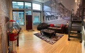 This truly one of a kind South Side Flats loft is a standout. With a lofted, fully equipped kitchen that overlooks the design forward living space below, the layout feels open, dramatic, and architecturally unique. The kitchen includes a dishwasher and garbage disposal, while bamboo flooring and exposed brick create the perfect blend of warmth and industrial character. High ceilings and a bold South Side mural give the space authentic Pittsburgh charm. The oversized sunken bedroom offers privacy and separation, while a bonus loft area provides flexible space for guests, a home office, or additional lounging. A full size in unit washer and dryer add everyday convenience. Unlike most city lofts, secure garage parking is included, a rare and valuable perk in this vibrant neighborhood.