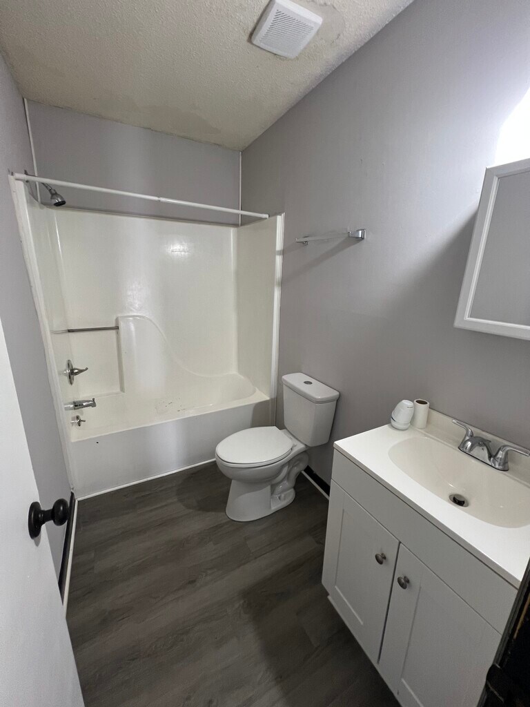 Downstairs apartment unit, 1 level, 1 bedroom, 1 bath. This apartment is very quiet and super, long term neighbors. Apartment has been freshly painted. Laminate wood planks throughout with carpet in the bedroom. Back door is located in bedroom and leads directly to the back patio area perfect for a small table or a propane grill. Water is included in rent. All other utilities are tenant responsibility. No pets allowed in this unit. No smoking allowed in any unit.
