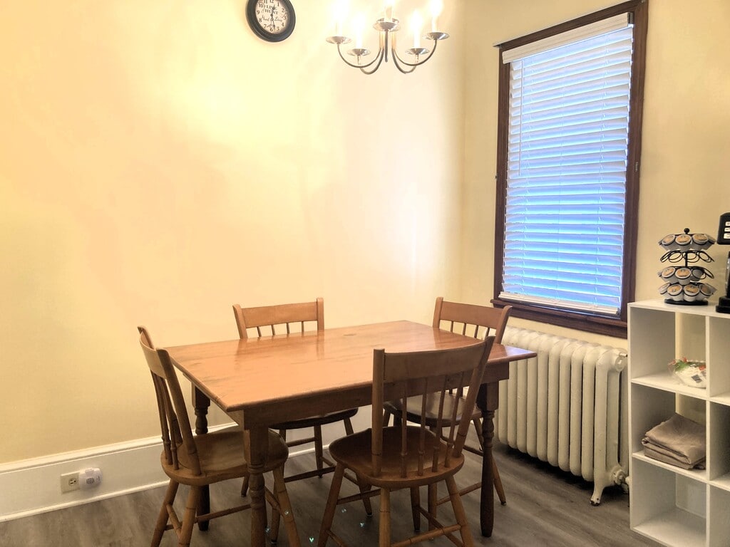 Located in a safe and friendly neighborhood. Bottom unit of duplex. 1 bedroom, 1 bath, fully furnished, utilities included, high speed internet (240mb/s), and private washer and dryer. No pets and non-smoking. Friendly and respectful long-term tenant lives in unit above. Includes weekly trash tags. Free on street parking.