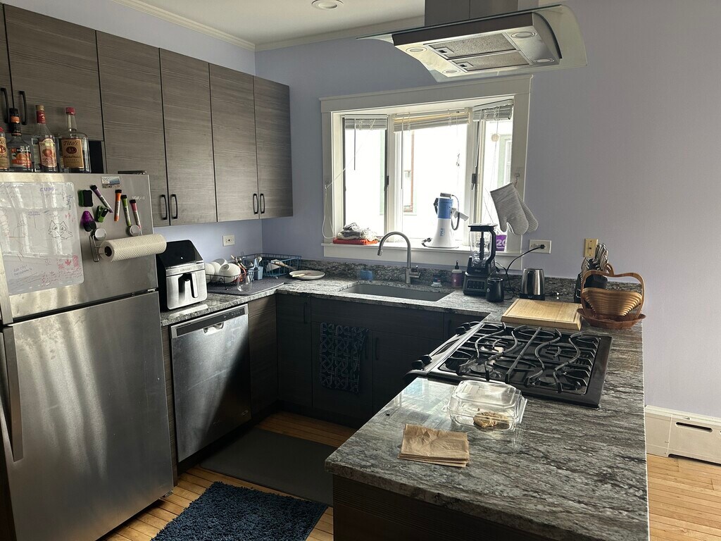 This is a perfect rental house, with large common areas, hardwood floors, and two brand-new kitchens. Includes free garage parking, a large basement with free laundry, and a huge back-yard. Kitchens have granite countertops and stainless-steel appliances. Management is local and highly responsive.