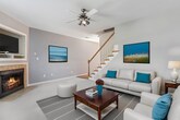 Esta casa ofrece dos dormitorios en la planta superior con dos amplios vestidores en el dormitorio principal y baños individuales. Townhouse ofrece acceso comunitario a la piscina y está cerca de parques, tiendas y restaurantes. Hay un baño auxiliar para invitados en la planta baja y una valla en el patio y en el armario de almacenaje al aire libre. La casa adosada incluye lavadora y secadora de carga frontal y refrigerador con dispensador de agua/hielera automática.