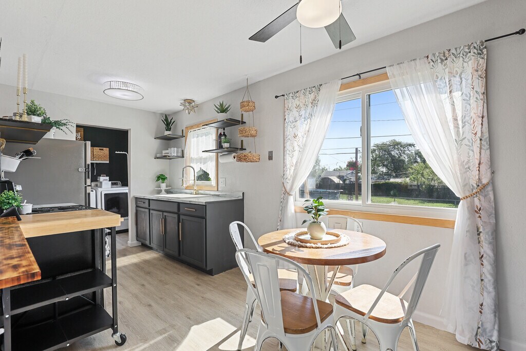 This charming single-level, 3-bedroom home on the east side is conveniently located close to everything. It features a brand-new kitchen and bathroom, updated electrical panel, LVP flooring, and freshly painted interiors. Step outside to a fully fenced backyard with a well-designed fire pit, shaded seating area, and mature lilac bushes flanking each side for added privacy. A large perennial flower bed enhances the outdoor appeal. The property is within walking distance to Robbinsdale Elementary, South Middle School, and Robbinsdale Park. Downtown Rapid City and Monument Hospital are just a six-minute drive away. The home comes with a whole-house fan, and both window and portable A/C units are included. Please note this is NOT a furnished house. Two pet limit with pet security deposit and $50/monthly per pet fee.