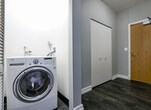 This 1-bedroom, 1-bathroom plus a DEN offers 825 square feet of living space. The unit features a spacious living room with a fireplace and air conditioning for comfort. The kitchen is equipped with a dishwasher and provides ample storage space. The bathroom includes standard fixtures and is designed for accessibility. Residents can enjoy amenities such as a fitness center, pool, and gated access. The building is smoke-free and includes an elevator for convenience. A washer and dryer are also included within the unit. 3 MONTHS - ZERO PARKING FEE! (FALL DEAL)