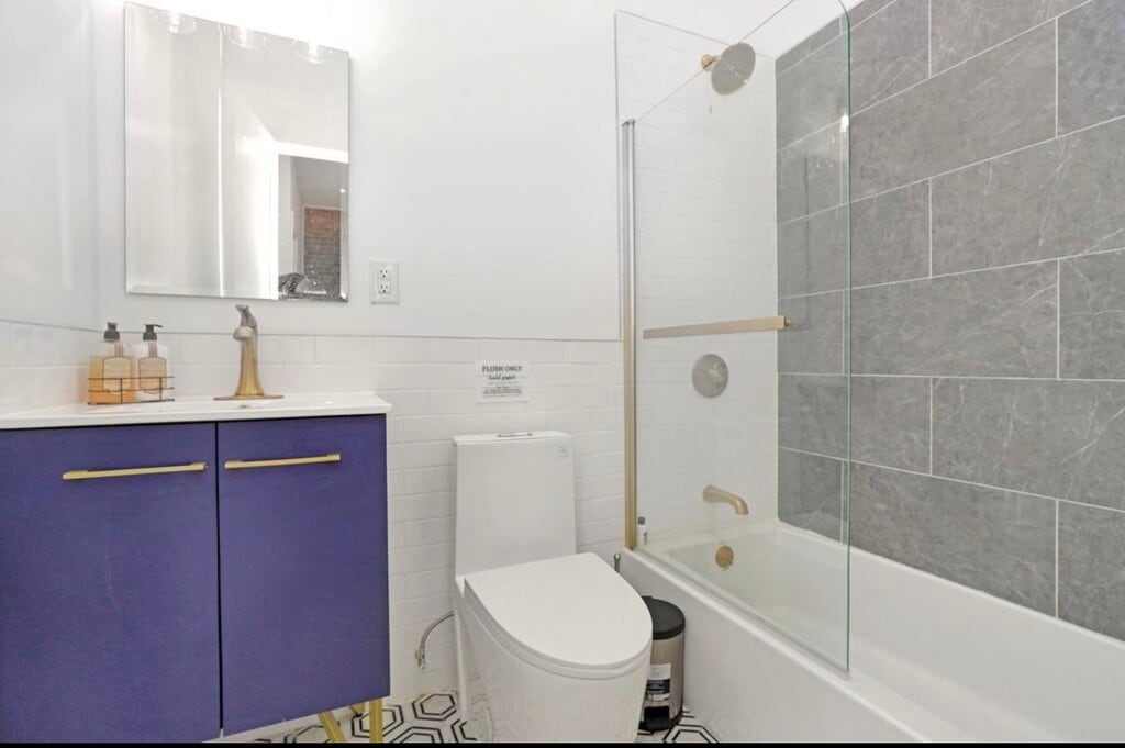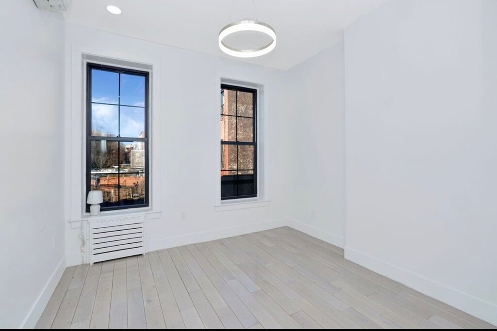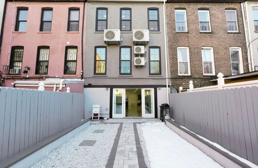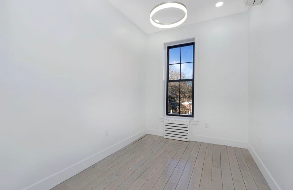Welcome to this stunning 2,050 sq ft fully renovated triplex apartment with a finished basement, located in the heart of Stuyvesant Heights. This spacious home offers 2 bedrooms and 1.5 baths, thoughtfully designed for modern living and entertaining. The ground floor features both front and backyard access and is perfectly configured for hosting, showcasing a brand-new chef's kitchen with sleek quartz countertops and stainless steel appliances. The open layout provides a seamless flow for dining and living. The fully renovated basement is accessible from the first floor and includes a washer and dryer, making it ideal for additional living space, a home office, or recreation area. Enjoy year-round comfort with a high-efficiency tankless water heater and split units on every level for heating and cooling. Soaring 10-foot ceilings and preserved original details add warmth and character throughout the home. Conveniently located near bus and train transportation. Please note: Washer and dryer usage is available for an additional $150 per month. Large enough for additional living space.