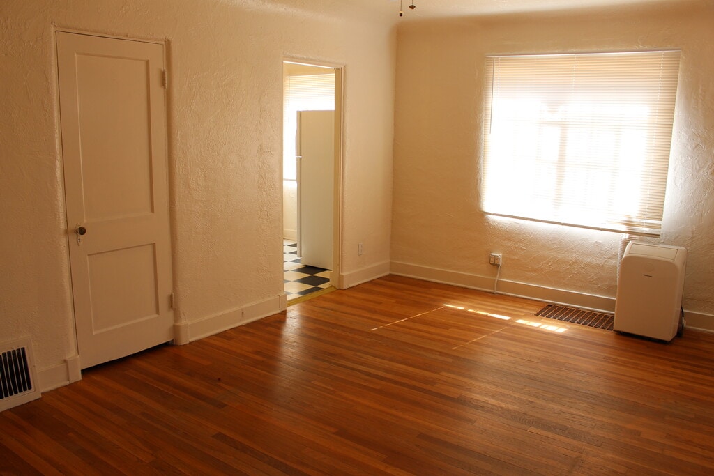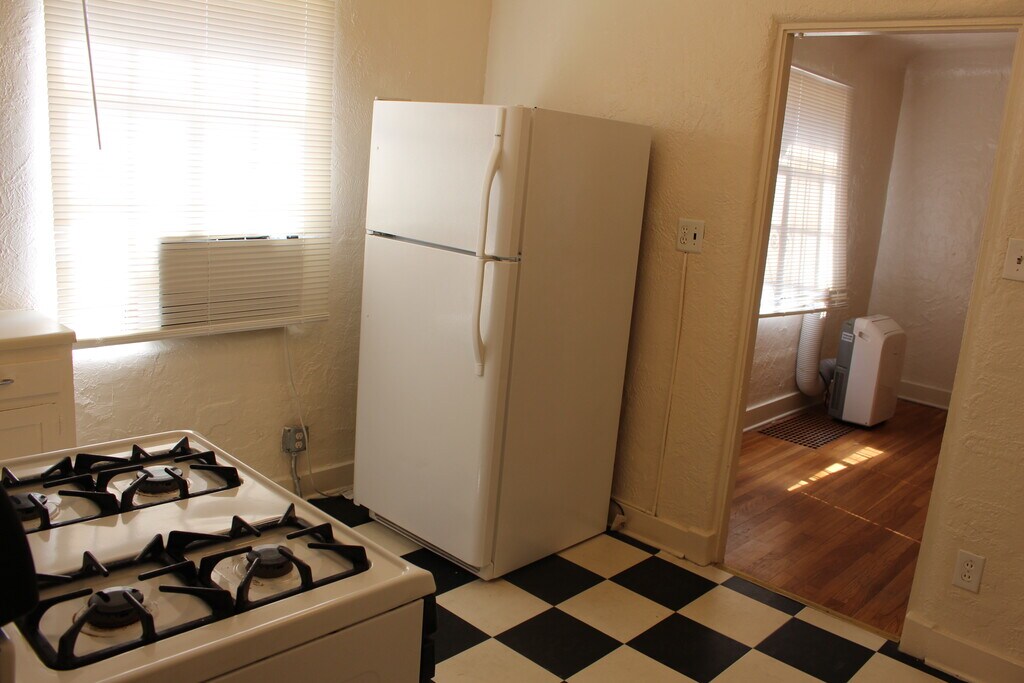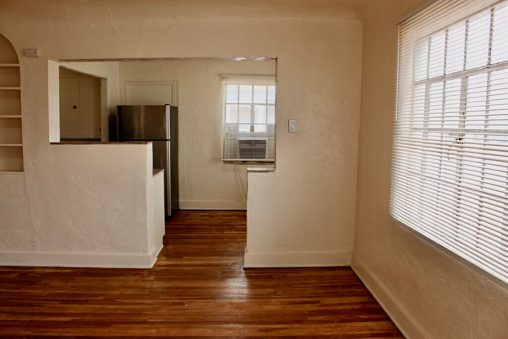 Gorgeous historic bungalow apartment with hardwood floors and lots of natural light is completely move-in ready and available right away. Super-close to UNM and Presbyterian, this beautiful 1-bedroom, full bathroom home is equipped with refrigerated air, gas stove, dishwasher, fridge, lots of built-ins and storage. Parking is in the back alley, and there's even a shared washer and dryer right on-site!