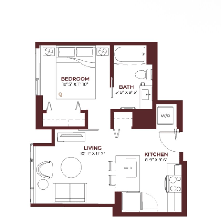 1 Dormitorio, 1 Baño, 505 pies²Disponible AhoraDetalles de Diponibilidad