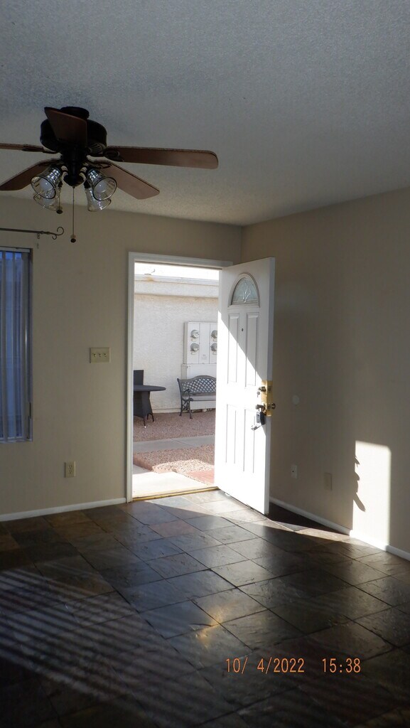Adorable single level 2-bedroom 1 bath condo with open floor plan. This home features slate flooring throughout the living areas and carpet in the bedrooms. Beautiful hickory cabinets and stone counter tops. W/D in unit (convenience items only). Freshly painted and cleaned. One assigned covered parking space and one uncovered parking space. Quiet community. Not far from city services: post office, library, police station, shopping, etc. Not far from Superstition Mountain Wilderness/Lost Dutchman state park hiking trails and recreations areas. Non-smoking. No dogs of any size. Please inquire about move-in costs, availability and qualifying criteria.