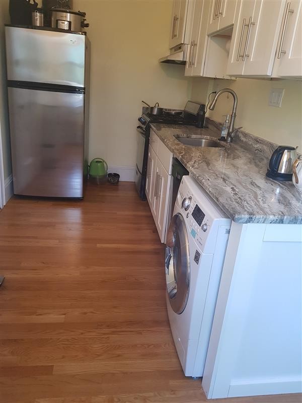 Top-floor charm just steps from Harvard Square—this modern 1-bedroom condo offers an unbeatable location approximately a 7-minute walk to the subway. Situated on the 4th floor of a classic brick walk-up, the home features hardwood floors throughout, high ceilings, and clean white walls that enhance the natural light. Enjoy the convenience of in-unit laundry, with heat and hot water included in the rent. A well-maintained and ideally positioned residence offering both character and everyday practicality. (Reference #137491)