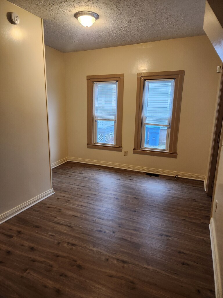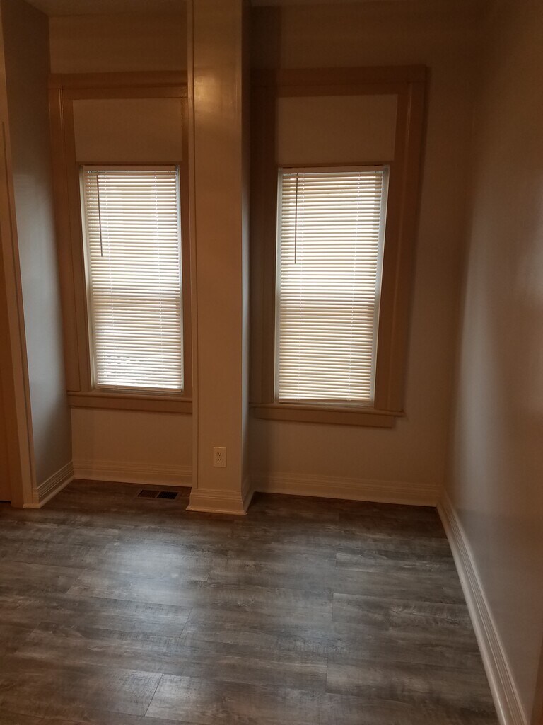 First floor 3 bedroom apartment at 22 Tracy St. Fresh paint and new luxury vinyl plank flooring in all bedrooms. Walk to Park Ave and East Ave restaurants and bars. Non smoking unit. Security system (tenant can set up and pay for monthly monitoring) Pet free, but one dog or cat may be considered depending on size, breed, and temperament. Extra fees will apply. Income must be at least 2 times rent. Security deposit is one month’s rent. Available April 1 Please call for a showing. LIVINGROOM 14’L x 14’W • New laminate flooring • Decorative fireplace • Ceiling fan • Main entrance, two windows KITCHEN 13’6” x 12’4”W • Oak cabinets w/gray countertop, white ceramic tile backsplash • Life Proof Luxury Vinyl Plank Flooring • Electric self-cleaning and convection oven • Built-in microwave over stove • Pantry • Refrigerator • Two windows • Dishwasher FRONT BEDROOM 13”9’ L X 14’2” W • Life Proof Luxury Vinyl Plank Flooring • Built-in bookshelf • Large closet • Two windows MIDDLE BEDROOM 11’2”X11’6” W • Life Proof Luxury Vinyl Plank Flooring • Large walk in closet • Two windows BACK BEDROOM 11’6”X16’3” W • Life Proof Luxury Vinyl Plank Flooring • Large closet • Two windows • Door opening to 11’ L x 5’W outdoor deck BATHROOM • ceramic tile floor and walls • window LAUNDRY ROOM OFF KITCHEN 13’3”L X 5’2”w • INCLUDES WASHER AND DRYER • Coat closet and linen closet Other Features: • Insulated windows throughout • Insulated walls • 90 percent efficient forced air gas furnace heat • Gas hot water heater • Mini blinds on all windows • Hot-wired smoke alarms and carbon-monoxide detector • Basement storage where designated • Off street parking • Approximately 1,120 square feet • 13’3L x 5’2”W Front porch