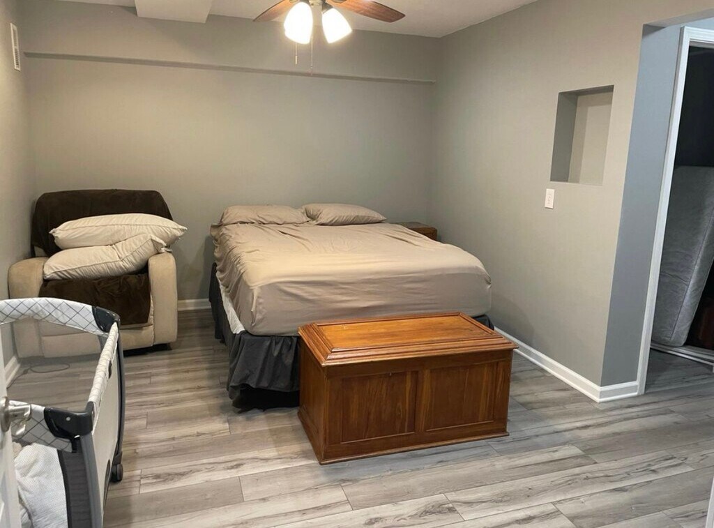 This is a fully furnished, 1 bedroom, 1 bathroom basement apartment. It has a separate entrance for privacy and designated parking in the driveway. This is a short-term month-to-month rental, so we can lease for as long or as short as you want. All utilities are included. It also has its own washer and dryer. My partner and I own the property and we both work from home, though we travel often. WIFI is included in the rent. There will be a TV in the family room of the apartment which will have a Firestick installed on it. You can sign into your Amazon account or other streaming services. Also feel free to bring your own chromecast or whatever you want to use with the TV. The kitchen has a dishwasher currently not shown in the pictures, and there will be a larger refrigerator. No smoking is allowed on the property. A credit and background check through this website or other similar website/service will be part of the rental application. Please contact me before applying so we can go through the process correctly. If you call, please leave a voicemail! I do not think this website lets text messages go through since it masks the real phone number. Please let me know if you have any questions! We like to be transparent with everything, it is easier for all of us that way. Access to the apartment is via the August lock phone app. It is very easy to use and is very dependable. It is battery-powered with a warning for when batteries are at 25%. It works via WiFi and Bluetooth, so even if the power is out, it will work. I feel it is also safer for tenants because I know that no previous tenant has a key. Please note that the pictures in this listing are temporary and will be updated as we progress on the rental, as we just purchased the property.