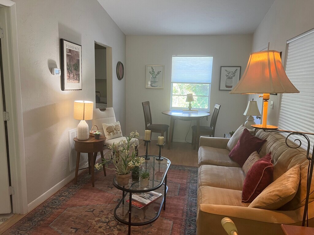 THIS IS Available now April1, 2026 . Charming secluded tastefully furnished 1/1 apartment with private entrance and walkway surrounded by lovely gardens and tropical foliage from every view, located in the heart of Sarasota. This newly, and fully renovated and painted apartment enveloped in luscious tranquility is centrally located in beautiful, quaint Arlington Park. Just 2 minutes from Southside Village, Mortons Market and Sarasota Memorial Hospital and minutes to downtown, beaches, shops and restaurants makes this a Rare Find in a superb location and neighborhood on a quiet dead end street. Private patio, gardens, W/D. cable and wifi, and all utilities included.