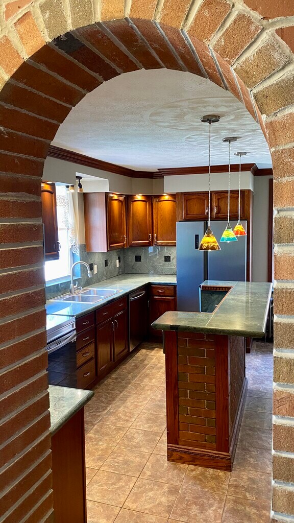 Fantastic 3 bedroom 1.5 bath ground level unit features wonderful luxury details including heated tile floors, granite countertops, under-cabinet lighting, brick accent walls, large kitchen island, jetted whirlpool bathtub, crown molding, custom blinds, stainless steel appliances, marble windowsills, expansive pantry and much more. An exceptional private paver patio is just outside the back door and a large basement allows for storage and features a massive tiled laundry room. Nice yard and off-street parking. All on one level with only one step up from the rear of the home. No pets, no smoking. Owner pays trash and sewer. Tenant pays all other utilities.