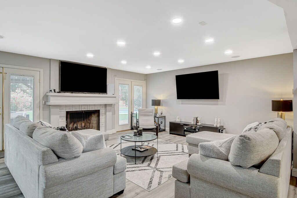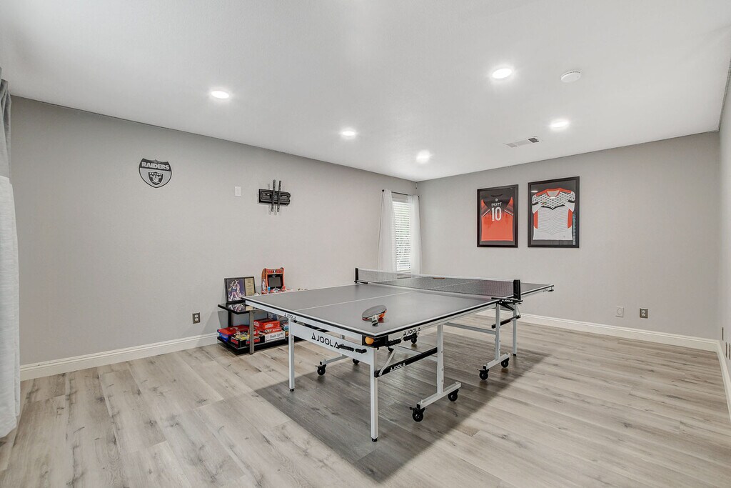 Spacious Green Valley Henderson Home on Huge Lot w/ Pool, Spa, Basketball Court. Tucked away in a quiet cul-de-sac,, this modern two-story offers everything you’ve been looking for, a massive 0.34 acre lot, sparkling pool with diving board, relaxing spa, and your own basketball court! Step inside to find an open concept layout w/ luxury vinyl plank flooring throughout. The bright kitchen opens to the living area and breakfast nook, while the formal dining room (currently used as a game room) adds flexible living space for entertaining or family fun. Downstairs features a bedroom & full bath, perfect for guests or multi-gen living. Upstairs, the oversized primary suite includes French doors to a private balcony, dual walk-in closets, & a spa-style bath w/ soaking tub & separate shower. You’ll also find 4 additional bedrooms of which one is a second master with another full bath connected. W/ six bedrooms, and endless outdoor space for recreation and entertaining, this home truly has it all