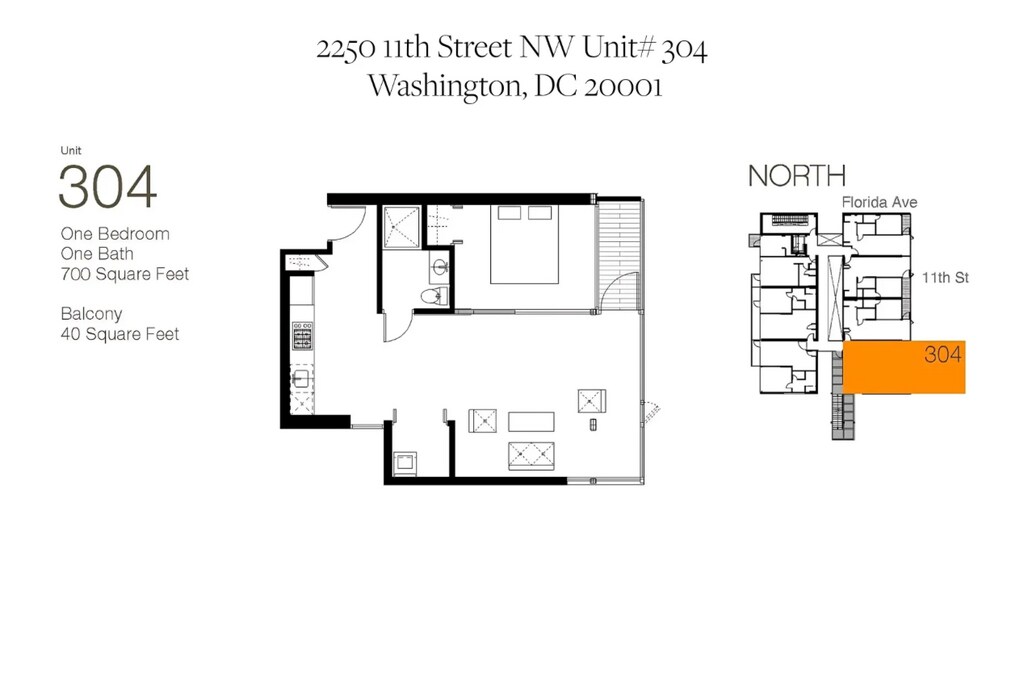 Está localizado en el barrio U Street, 2250 11th St NW, Unit 304 en el código postal 20001 de Washington, DC.