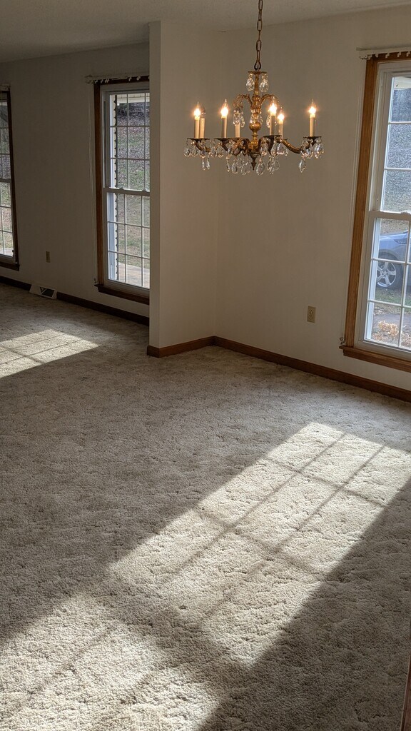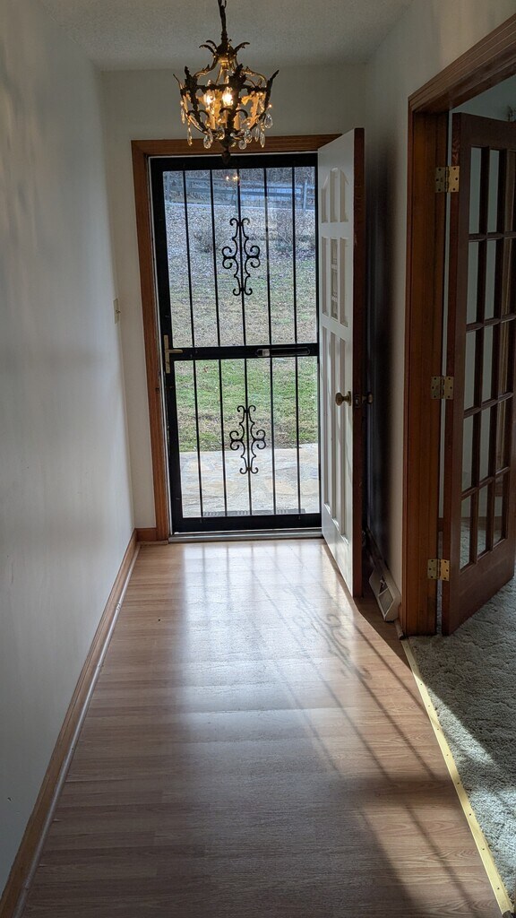 Welcome home to country living--in this spacious, well-kept, and beautiful home with wonderful views! Bright sunroom overlooks the wide 0.5 acre yard and hills beyond. Big living area with fireplace and built-in bookshelves. Country kitchen with new, stainless steel appliances and eat-in area. Dining room and second living area. Utility room with a sink and lots of natural light. New paint throughout. Full basement with two-car attached garage. Located near I-40 at the Alexandria Exit. Come and see!