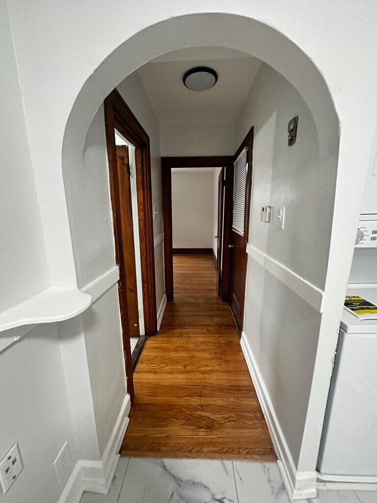 Newly remodeled apartment in Maplewood, located just around the corner from many Maplewood attractions. Walk to downtown Maplewood! First floor one-bedroom, one bath unit in four-unit building: - New Kitchen with Stainless Steel Appliances - (Range, Refrigerator, Dishwasher, Microwave) - Updated Bath - Wood Floors - Stain Glass - Free Laundry and Storage Locker in Basement - Covered Parking (One Space per Apartment) - Common Basement Area One-year lease and security deposit required. Representative photos are of another unit in the building.