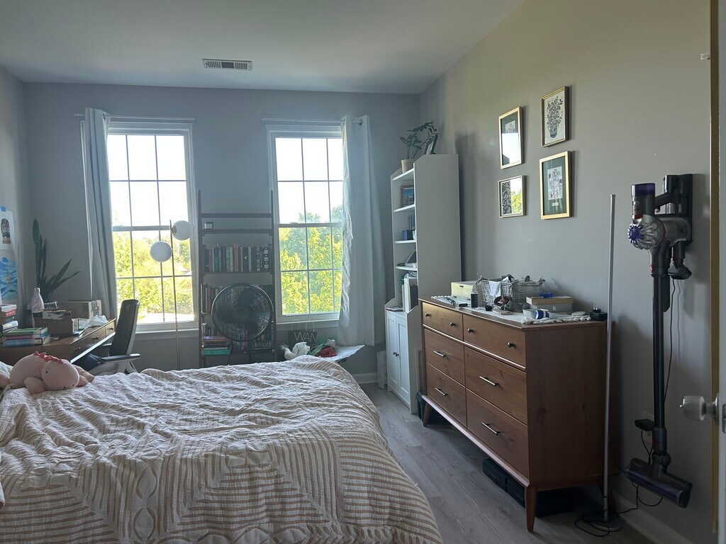 2BR / 2BA Condo for Rent – The Grove at Arlington – $3,050/mo Fully renovated 2-bedroom, 2-bathroom condo on the 3rd floor of The Grove at Arlington offering spacious living, modern finishes, and excellent commuter access. Rent includes one assigned, covered garage parking space. Gut-renovated in 2021 with wood plank flooring, updated kitchen (new countertops, backsplash, cabinetry, industrial sink), and fully remodeled bathrooms (new tile, showers, and vanities). Available mid-to-late June 2026. Unit Features: * 1,086 sq ft with 9+ ft ceiling * Private balcony off living room * In-unit washer & dryer * new washer (2024) * new dryer (2025) * New dishwasher (2022) * Nest thermostat * Gas cooking * Unfurnished (living room and patio furnishings available upon request) Primary Bedroom Suite: * Approx. 11’ x 14’ * Custom walk-in closet with built-in dresser * Double vanity * Walk-in shower with rainfall + handheld showerhead Second Bedroom / Guest Suite: * Approx. 14’ x 11’ * Spacious walk-in closet with shelving * Full en-suite bathroom Community Amenities: Secure, professionally managed community featuring: * Fitness center * Pool + locker room * Theater room * Party room with kitchen & pool table * Separate landscaped courtyard with gas grills * On-site management * Bicycle storage room Prime Arlington Location: Easy access to I-395, Pentagon City, Crystal City, Shirlington, Old Town Alexandria, Downtown DC, Reagan National Airport, Amazon HQ2, and Four Mile Run Trail. ART bus stop directly outside building with service to the Pentagon. Lease Terms: * $3,050/month * Security deposit: one month’s rent * Utilities not included (historically approx. $110–$175/mo depending on usage) * 1+ year lease preferred * Optional second parking space available for $75/month * No smoking * No pets * No application fee * Available start date: mid-to-late June 2026 * Applicants subject to income, credit, rental history, and background review.