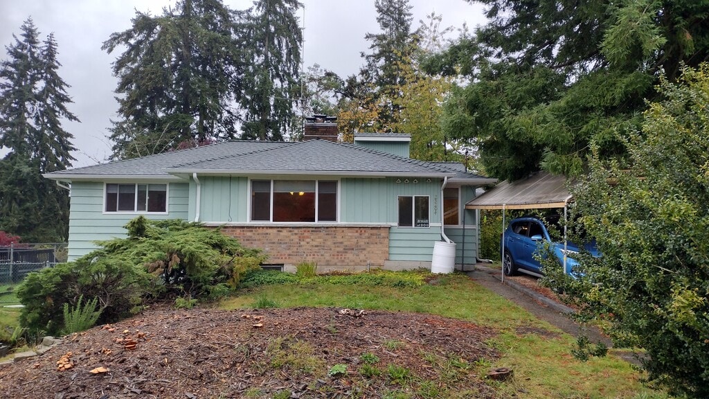 Newly Renovated 3 bedroom 2 bathroom house. 1350 sq. ft. upstairs, plus an additional 750 sq. ft. of finished basement, with two bonus rooms, plus a large rec room. (A total of 2100 sq. ft. not counting the large storage area in the attic or the garage!) Garage has been renovated so you can park a car. Ample room out front under the newly renovated car port and in the driveway and in the garage for several cars. Only 2 blocks from the new Mountlake Terrace Light Rail Station... only a 30 minute ride to downtown Seattle! Skip the freeways. Skip the Park-and-Ride. Walk 2 blocks, hop on and you're in Seattle. Recent Renovations include: Updated kitchen with marble countertops, GFCI outlets and stainless steel appliances (dual ovens, range hood, stove top, sink, new garbage disposal, new refrigerator). New bathrooms upstairs and down. Upgraded control system on the oil furnace that does not use a pilot light burning continuously. Upgraded electrical system for the whole house. Refinished and restored woodwork, including the hardwood floors. New floors anywhere there wasn't hardwood. New windows and exterior doors. Outdoor water drainage rerouting. Chimney repaired and restored. Basement waterproofing. Roof is only a few years old. Pet friendly (for smaller pets... the fence is not tall.) No smoking. Outdoor garden plots on the sunny side of the yard.