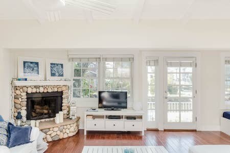 ¡Escápese a este paraíso cerca del agua! Relájese en la amplia cubierta de esta adorable cabaña en la playa de Cape Cod en el canal principal de Venice Beach. Disfrute del espacio iluminado por el sol con vista al agua desde todas las habitaciones. Camine hasta los restaurantes y la playa, o simplemente a lo largo de los canales, o tome nuestro pequeño bote de remos para realizar un recorrido único por el canal. El diseño clásico de la cabaña de capa de bacalao cuenta con puertas holandesas, tragaluces, cajas para ventanas y pisos de madera, así como una chimenea de roca de río. Ligero y luminoso, con techos altos y encantadores detalles de cabañas como chimenea de roca de río, pisos de madera de madera ancha, puertas francesas y ventanas en todas partes. Sorprendentemente, esta cabaña de un dormitorio tiene capacidad para cinco huéspedes adicionales en la sala de estar con sofá cama Queen, además de dos sofás cama individuales que duplican los magníficos espacios para leer por la tarde con vista al canal. Cocina con lavavajillas y cocina al alcance de su mano, comedor para seis personas, baño completo, aparcamiento en el acceso, barbacoa con zona de estar, W/D, wifi, TV inteligente, aparcamiento gratuito en el hotel, lavandería también, literalmente todo lo que necesita para unas excelentes vacaciones en la ciudad.