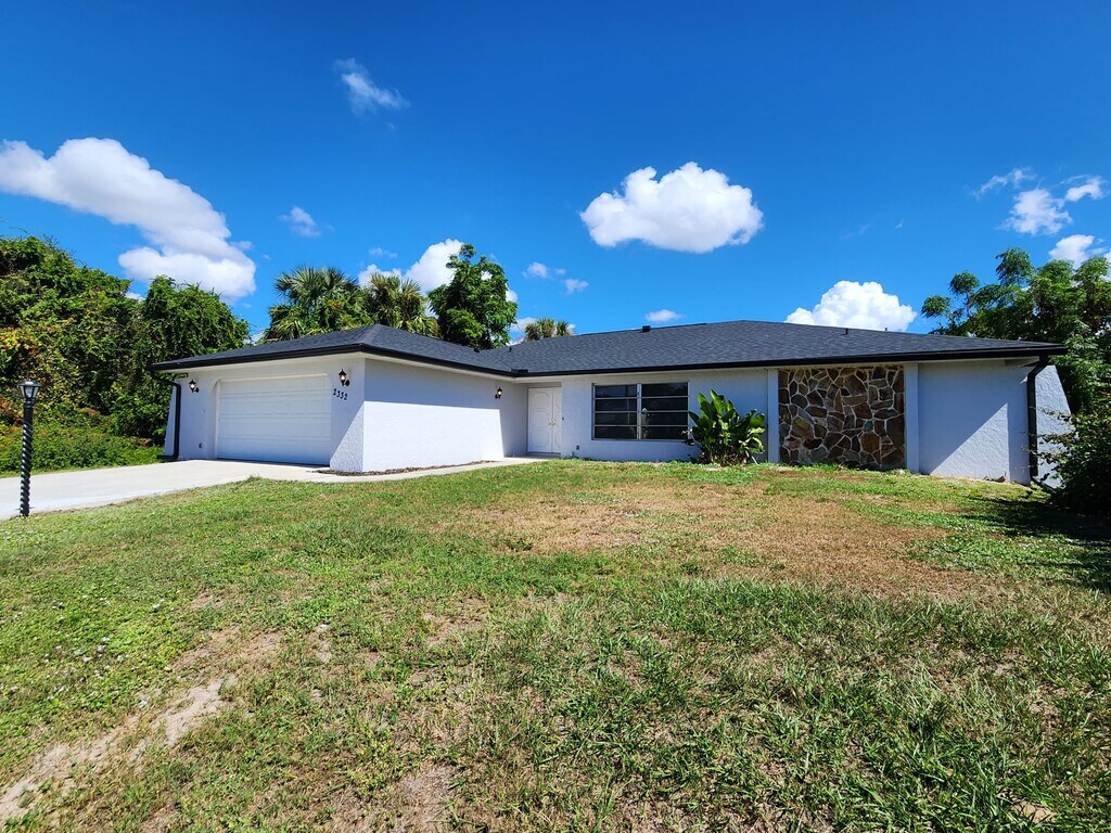 Beautifully renovated and spacious 3-bedroom, 2-bathroom single-story home located in a quiet, desirable neighborhood in Port Charlotte. Conveniently close to schools, shopping centers, restaurants, and I-75. Step inside to discover fully updated bathrooms, a modern kitchen, and a dedicated laundry area designed for everyday comfort and convenience. The large kitchen features ample storage, stainless steel appliances, and contemporary finishes perfect for cooking and entertaining. The home also includes a two-car garage, spacious bedrooms, and a large screened lanai where you can relax and enjoy Florida's beautiful weather. This home is move-in ready and available for an annual lease. First month's rent and a security deposit equal to one month's rent are required prior to move-in. All occupants aged 18 and older must complete an application; credit and background checks will be conducted. Utilities (water and electricity) and lawn maintenance are not included in the rent. Smoking and recreational drug use are strictly prohibited. Pet-friendly - please contact for details.