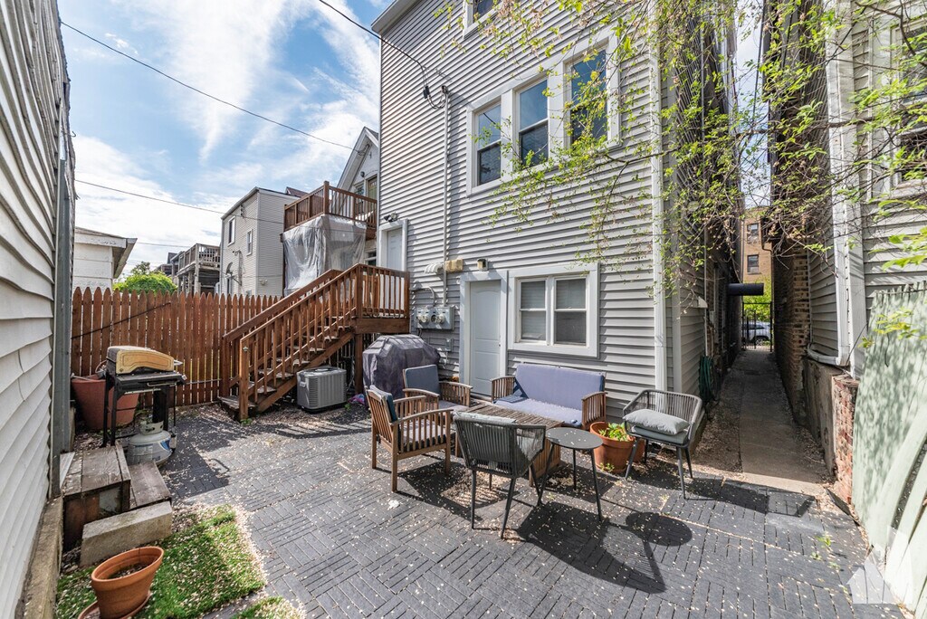 Renovated Wicker Park 2BD/1BT Gem with Bonus Sunroom! Step into elegance with dark hardwood floors adorning this charming residence throughout. An updated kitchen awaits, boasting ample cabinet space for storage, granite countertops, a microwave, and a dishwasher, making meal preparation effortless and stylish. The spacious bathroom features custom tile work and a stand-up shower, offering a luxurious retreat after a long day. Stay comfortable year-round with central heating and air conditioning. Enjoy the convenience of in-unit laundry facilities, adding ease to your daily routine. Take advantage of the shared outdoor space, perfect for enjoying the fresh air and sunshine. ALDI, The Stop Along, Irazu, and the Western Blue Line are all a few blocks away