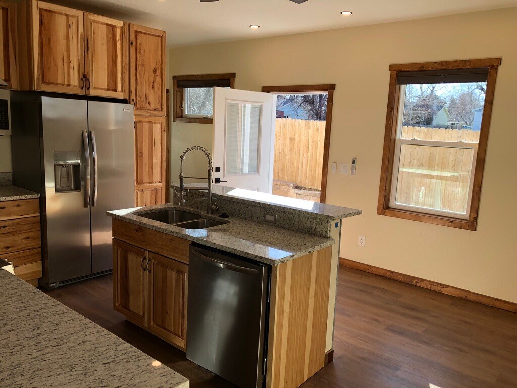 Newly built 2024 ADU located in a quiet residential neighborhood near Crown Hill Park in Lakewood, Colorado. The unit sits privately at the rear of the property, set back from main streets and surrounded by mature trees, creating a peaceful and secluded living environment while remaining close to shopping, restaurants, and downtown access. Pet MAY be negotiable for a pet fee. The home features a bright open living and kitchen area with natural wood cabinetry, granite countertops, stainless steel appliances, and a large kitchen island with double sink and dishwasher. Warm natural wood trim and cabinetry throughout the unit create a clean, modern interior that works well with a wide range of furniture and design styles. Property has a security system. The bedroom includes a walk-in closet, large windows, and plenty of natural light. The bathroom features a walk-in rain shower with custom tile, modern fixtures, and built-in shelving. Exceptional central location with quick access across the metro: about 15 minutes to downtown Denver, Golden, and Red Rocks, and 10 minutes to Edgewater, Olde Town Arvada, Tennyson/Berkeley, and Belmar. Easy access to Interstate 70 and U.S. Route 6 (6th Avenue Freeway) for commuting or mountain travel.