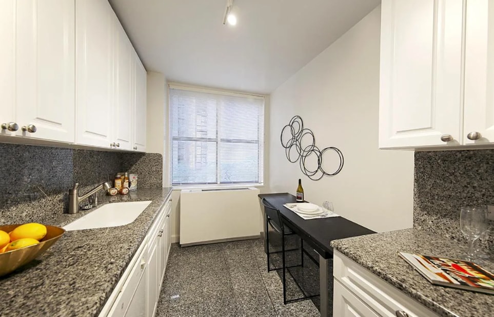 Just steps from Central Park and Columbus Circle, this spacious residence features a large living and dining area, a split-bedroom layout with a king-sized primary suite, and two full marble bathrooms. The windowed eat-in kitchen is equipped with stainless steel appliances and a filtered water system. Custom closets offer abundant storage throughout. Building amenities include a fitness center, resident lounge, children’s playroom, and a 24-hour garage with electric vehicle charging stations.